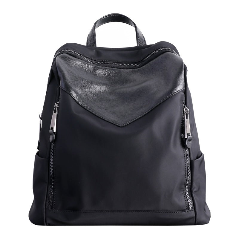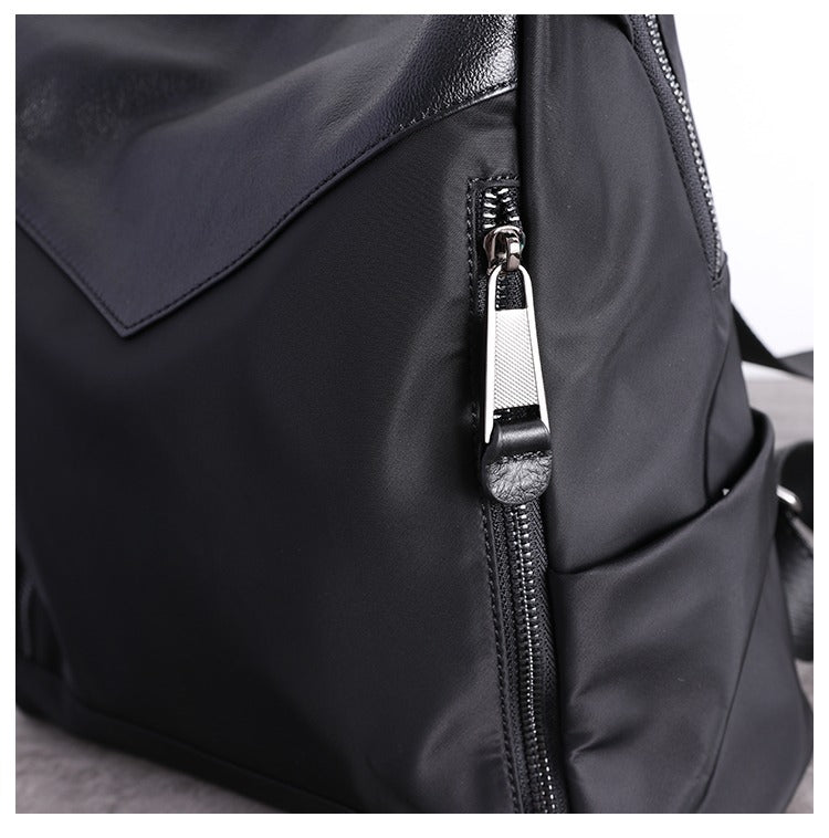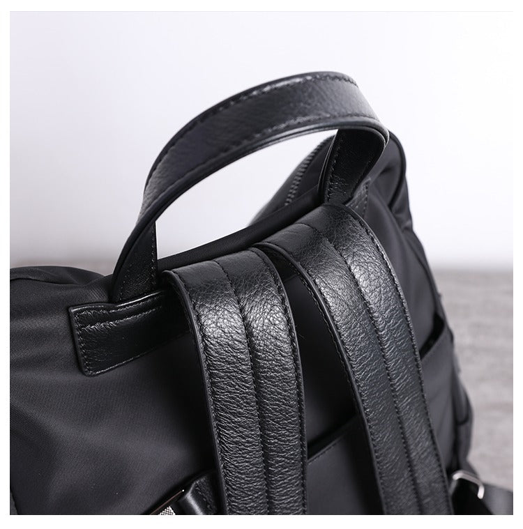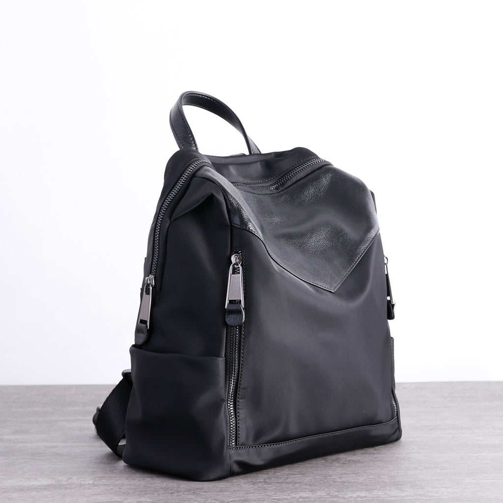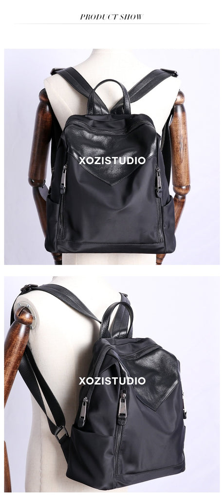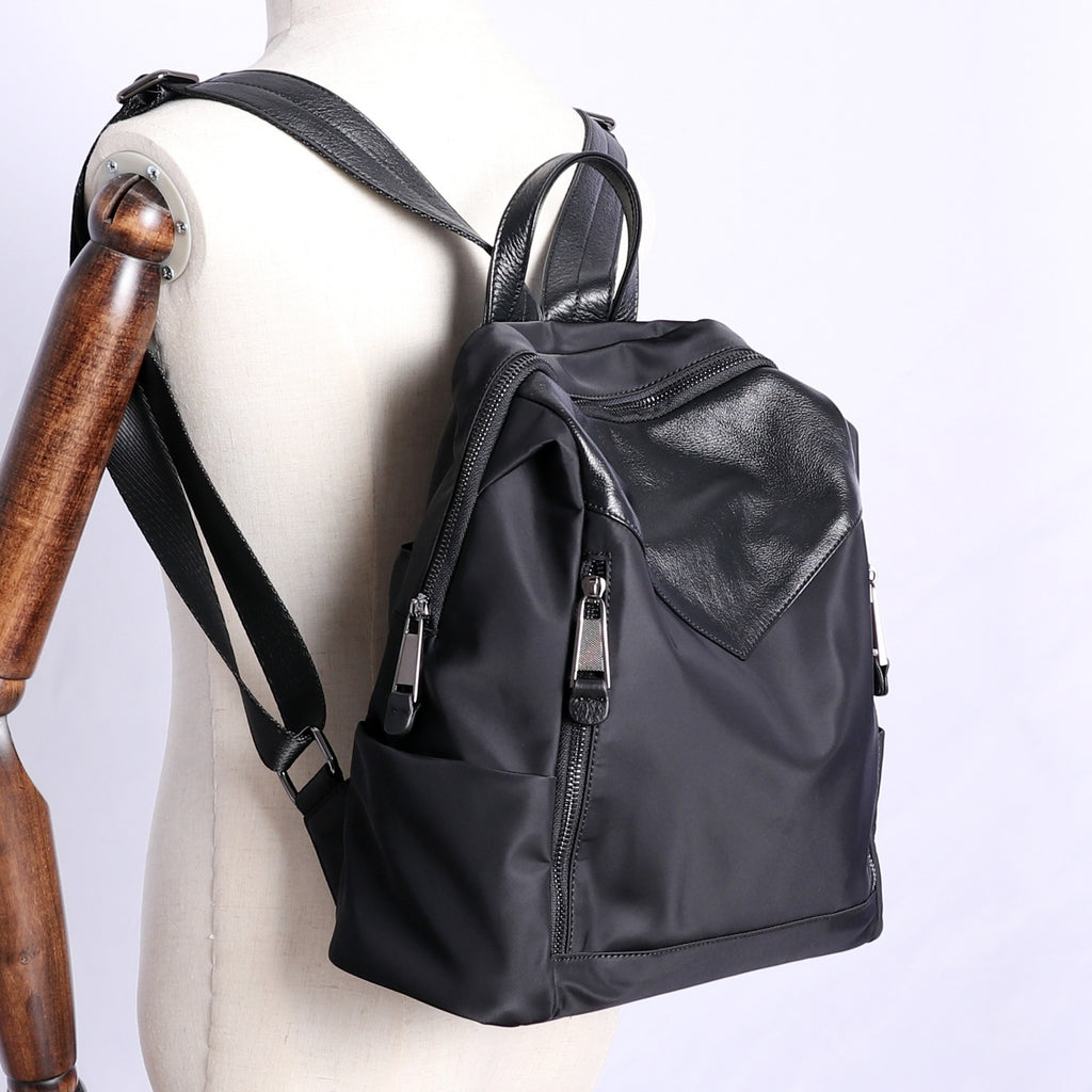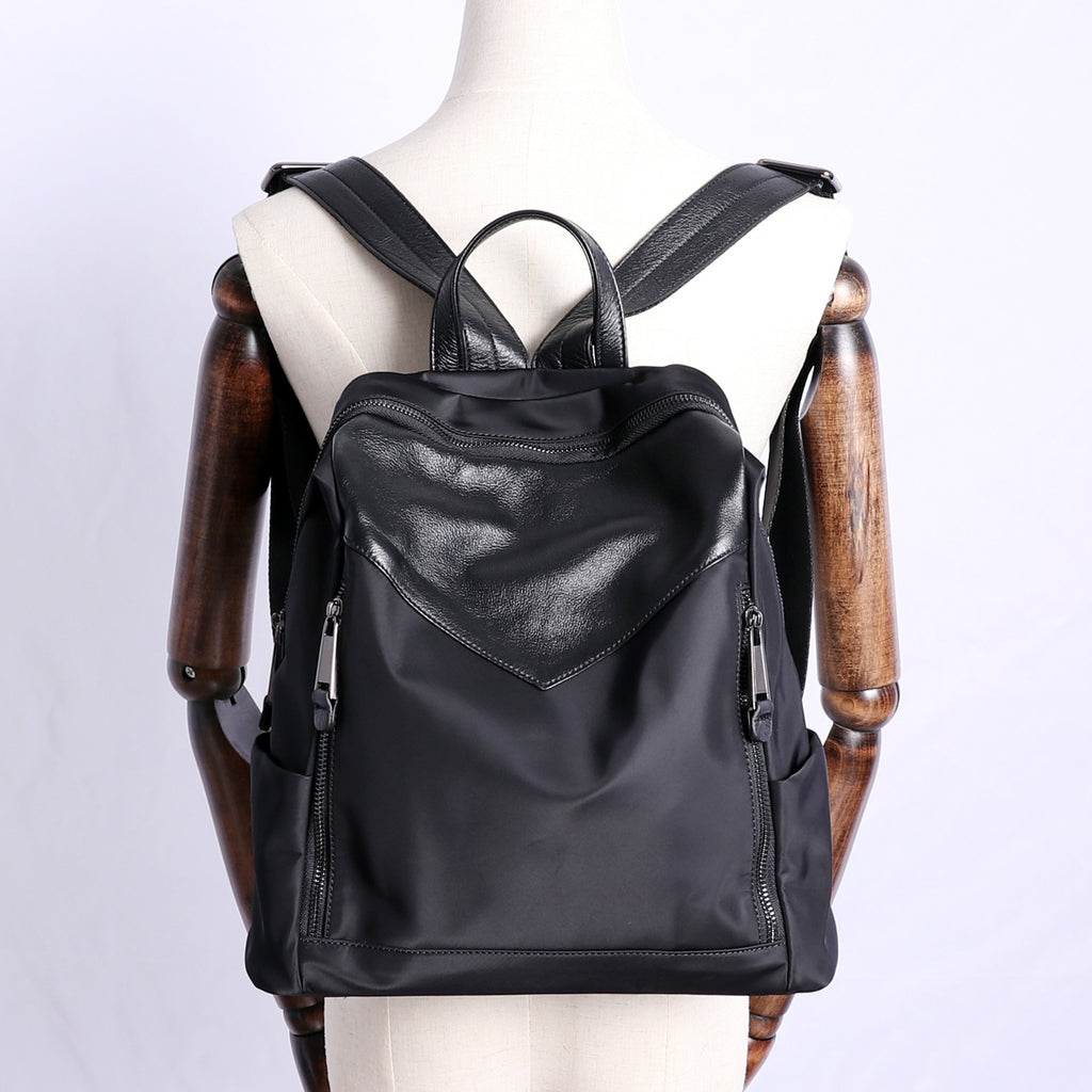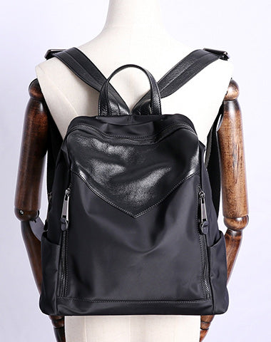 Style: Black Nylon Leather Satchel Rucksack Womens School Backpacks Purse Nylon Leather Travel Rucksack for Ladies