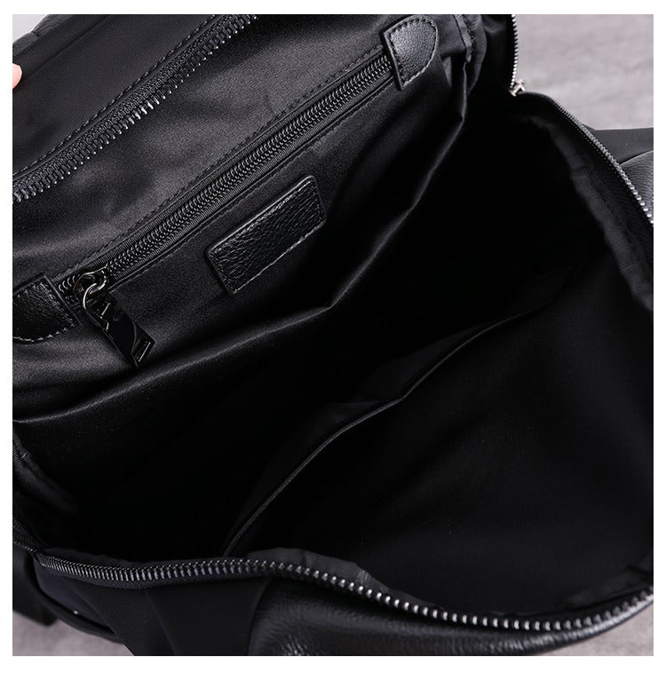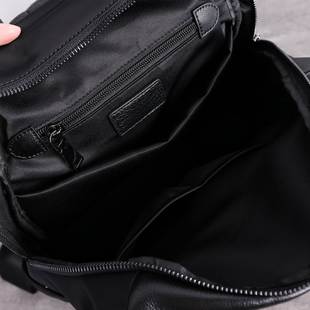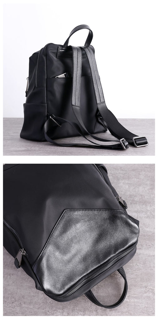 Design: Black Nylon Leather Satchel Rucksack Womens School Backpacks Purse Nylon Leather Travel Rucksack for Ladies