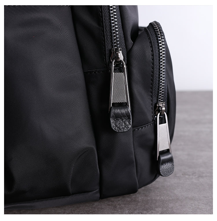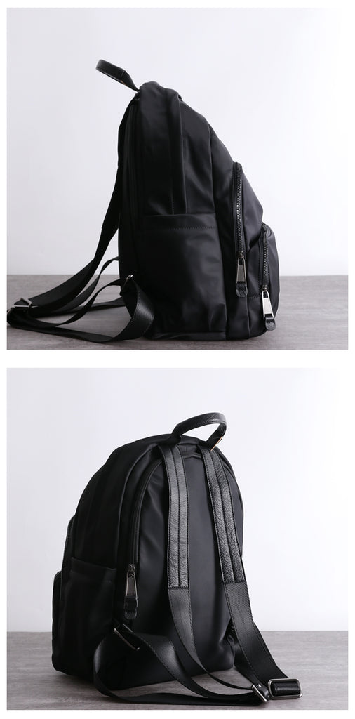 Style: Black Nylon School Backpack Womens Satchel Backpack Purse Black Nylon Leather Travel Rucksack for Ladies