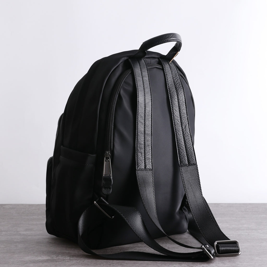 Design: Black Nylon School Backpack Womens Satchel Backpack Purse Black Nylon Leather Travel Rucksack for Ladies