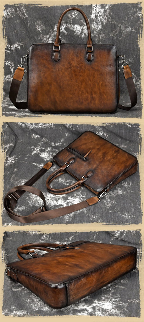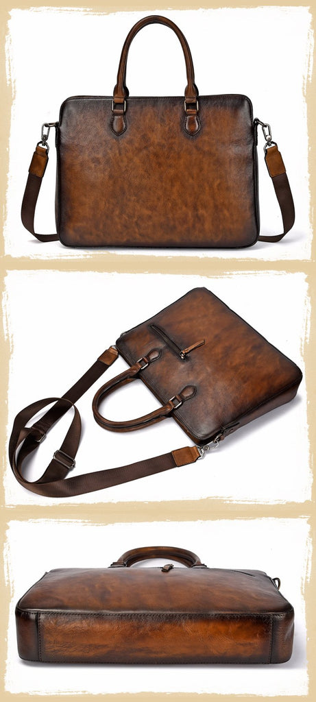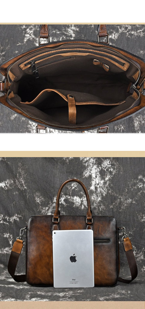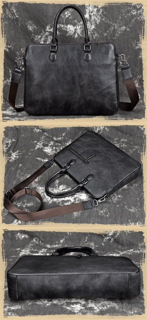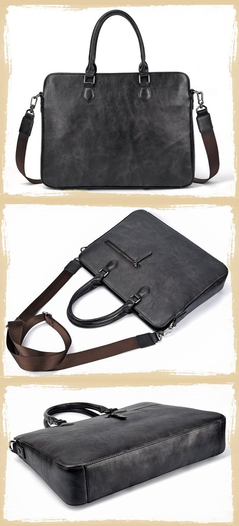 Design: Top Black Leather Men's Professional Briefcase 14‘’ Laptop Best Handbag Business Bag For MenOverview: