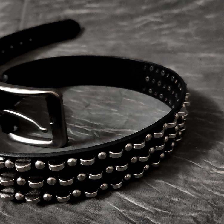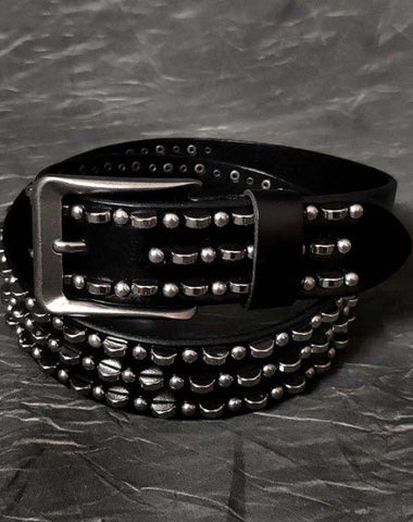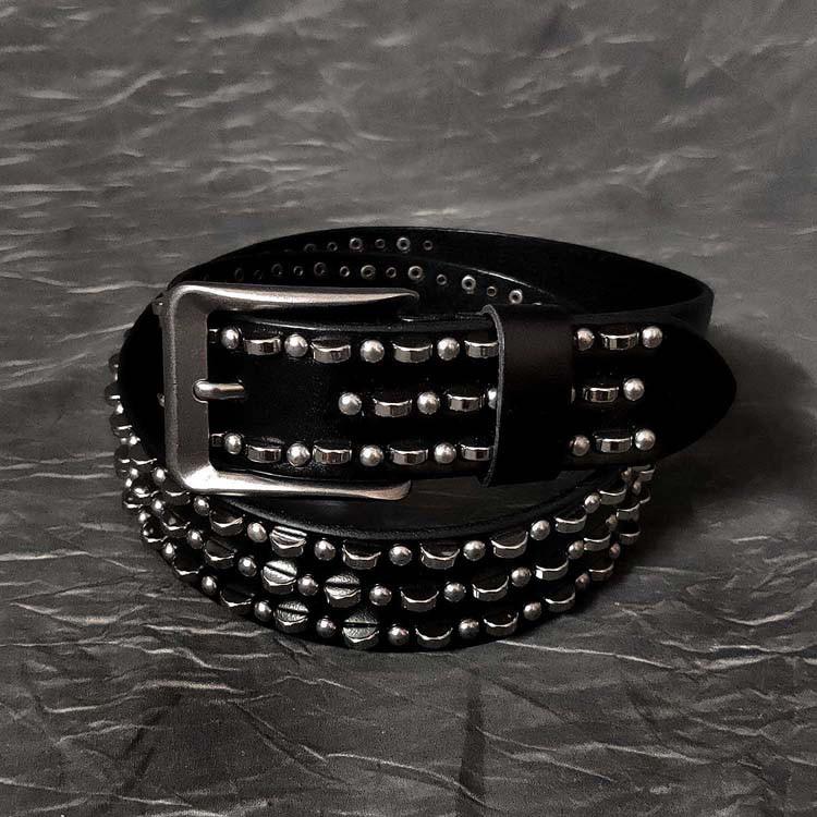 Design: Black Punk Retro Leather Metal Belt Motorcycle Belt Leather Round Belt For Men