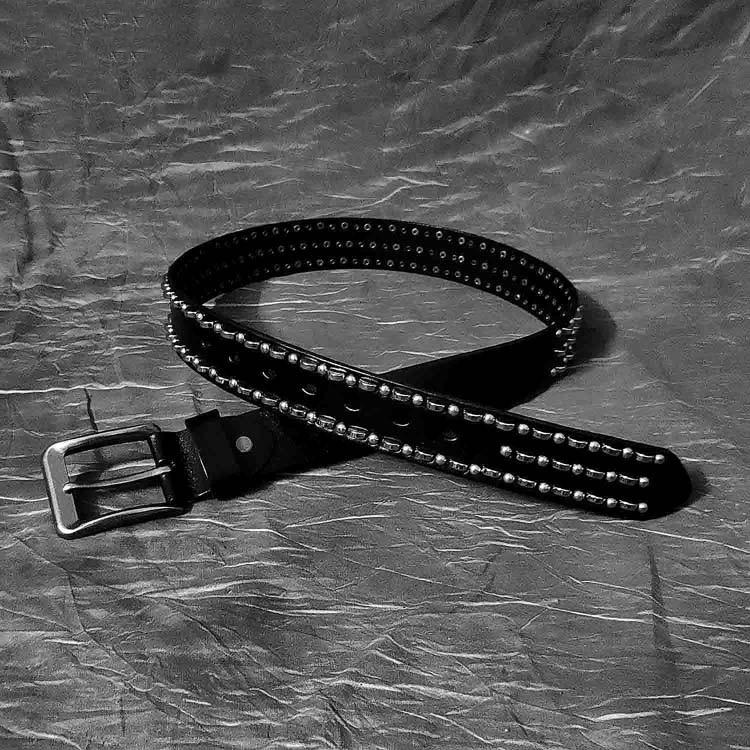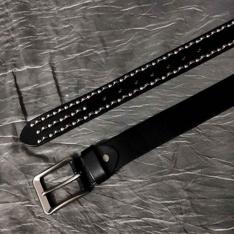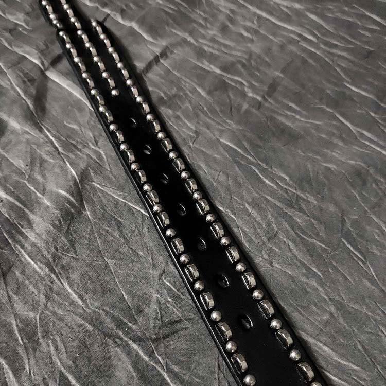 Style: Black Punk Retro Leather Metal Belt Motorcycle Belt Leather Round Belt For Men