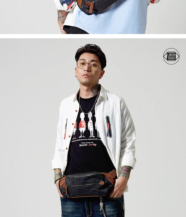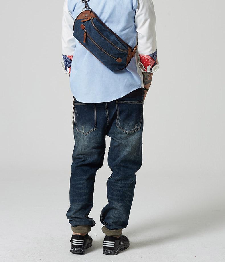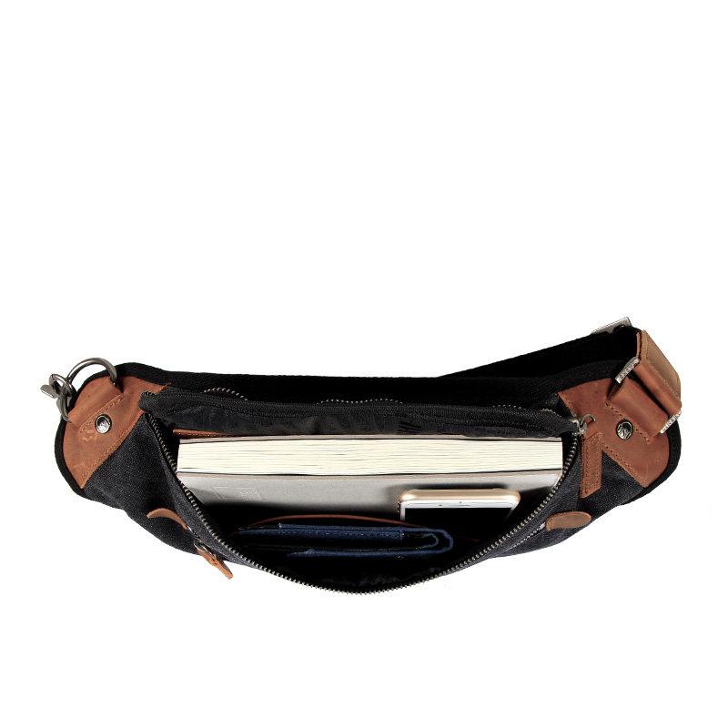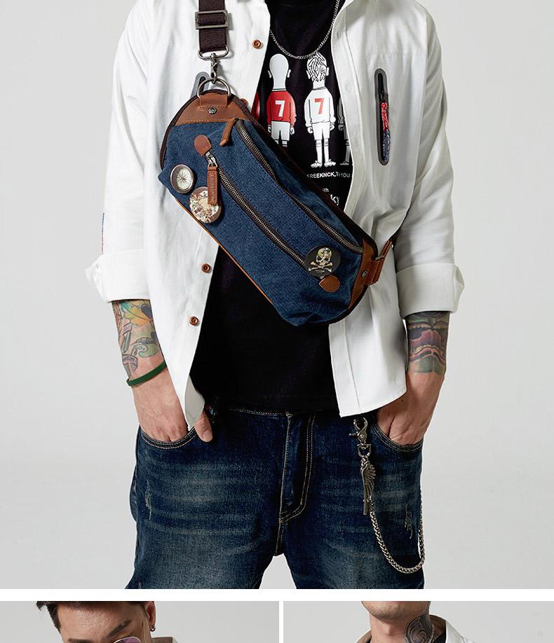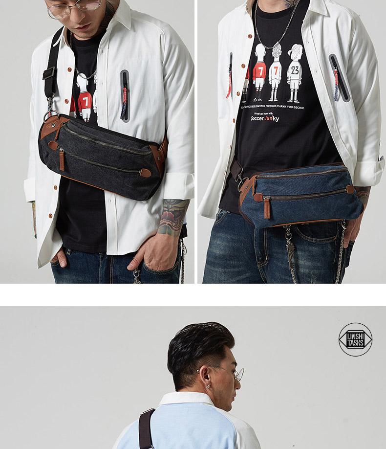 Design: Black Retro Canvas Leather Fanny Pack Men's Chest Bag Sling Hip Bag Waist Bag For Men