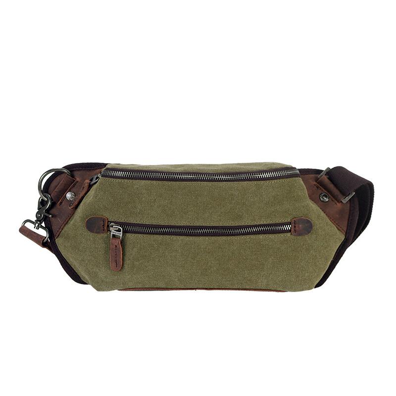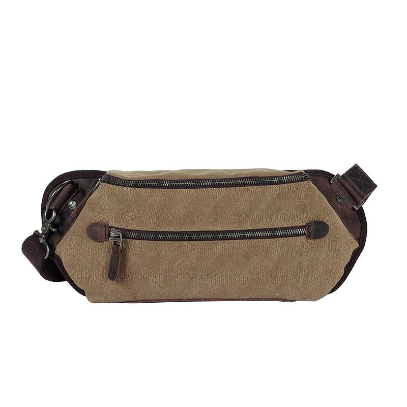 Style: Black Retro Canvas Leather Fanny Pack Men's Chest Bag Sling Hip Bag Waist Bag For Men