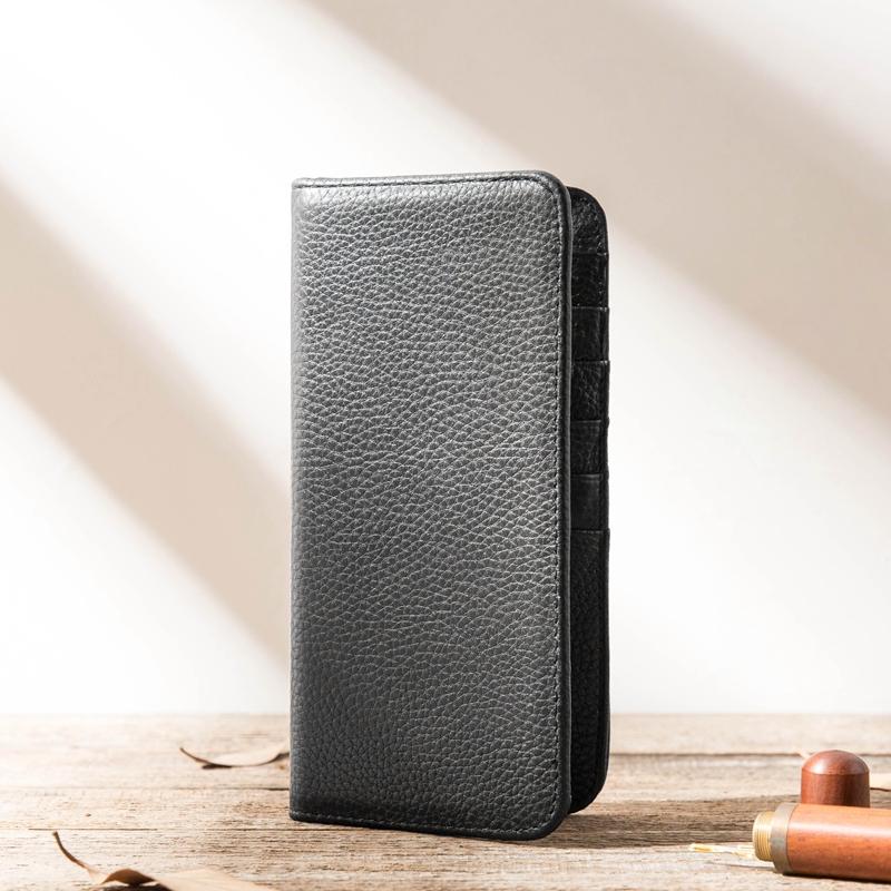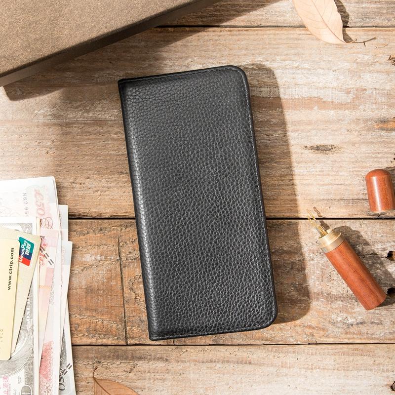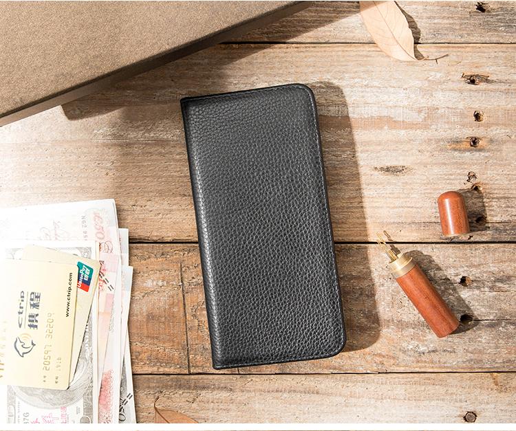 Design: Black Retro Leather Mens Long Wallet Thin Card Wallet Front Pocket Wallet for Men