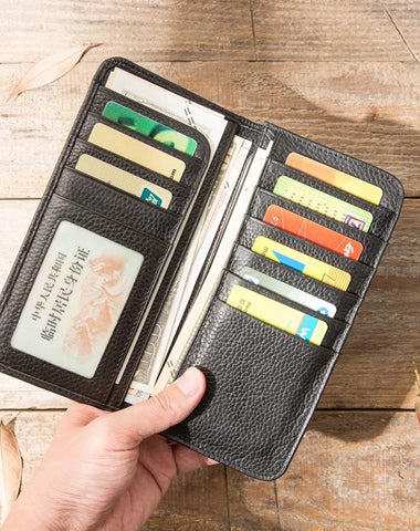 Style: Black Retro Leather Mens Long Wallet Thin Card Wallet Front Pocket Wallet for Men