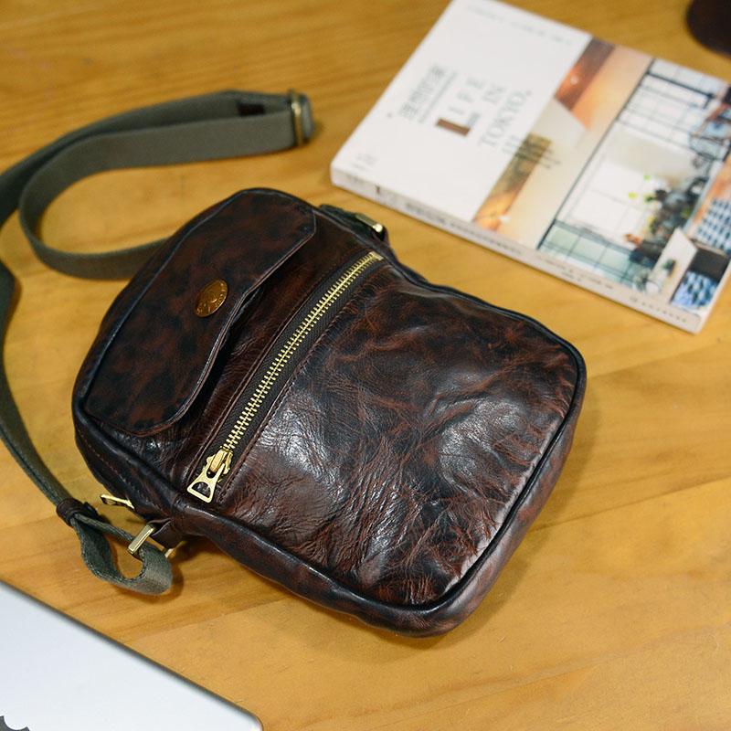 Style: Black Simple Handmade Leather Men Small Shoulder Bag Brown Messenger Bag Side Bag Phone Bag For Men