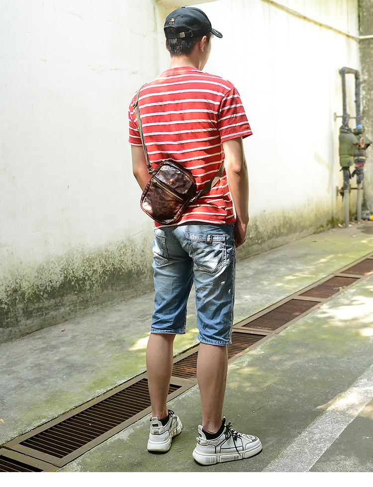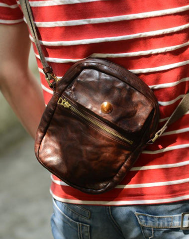 Design: Black Simple Handmade Leather Men Small Shoulder Bag Brown Messenger Bag Side Bag Phone Bag For Men