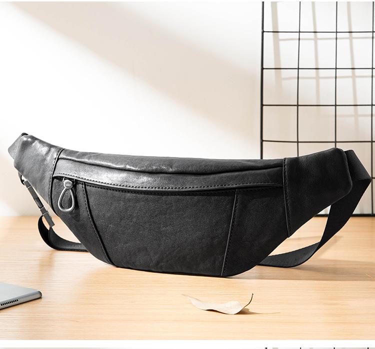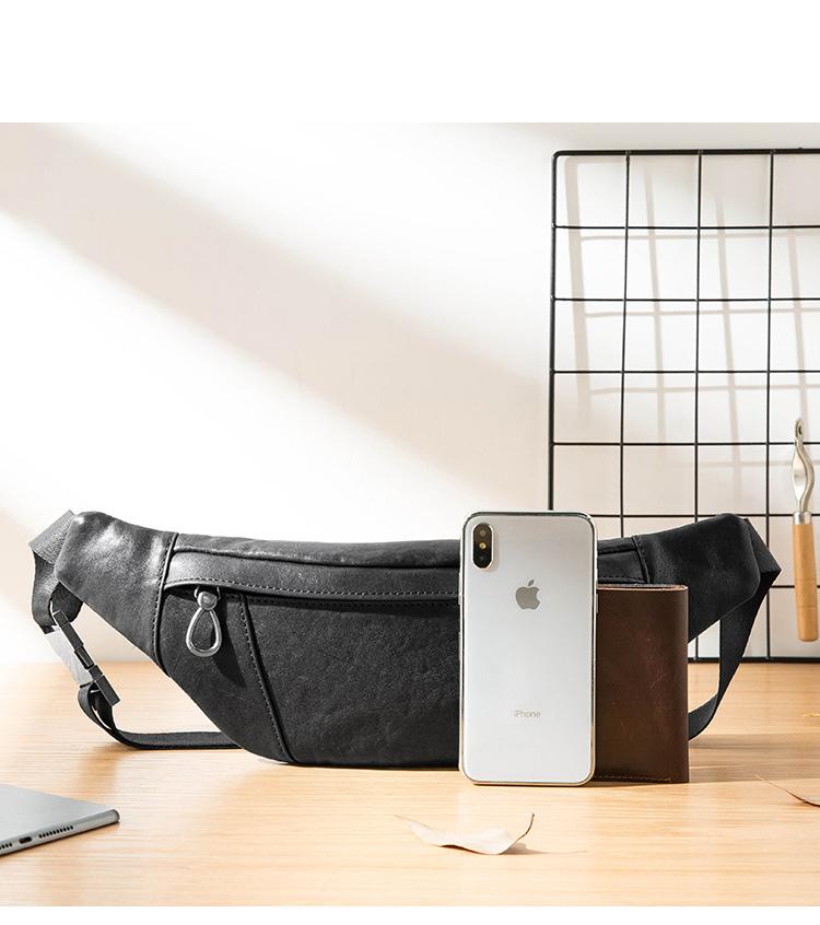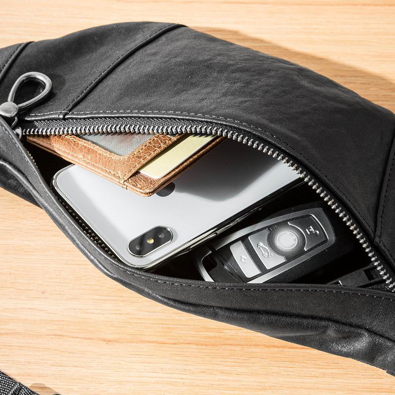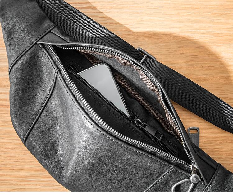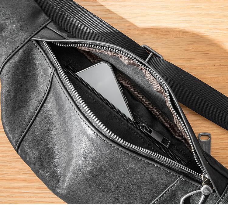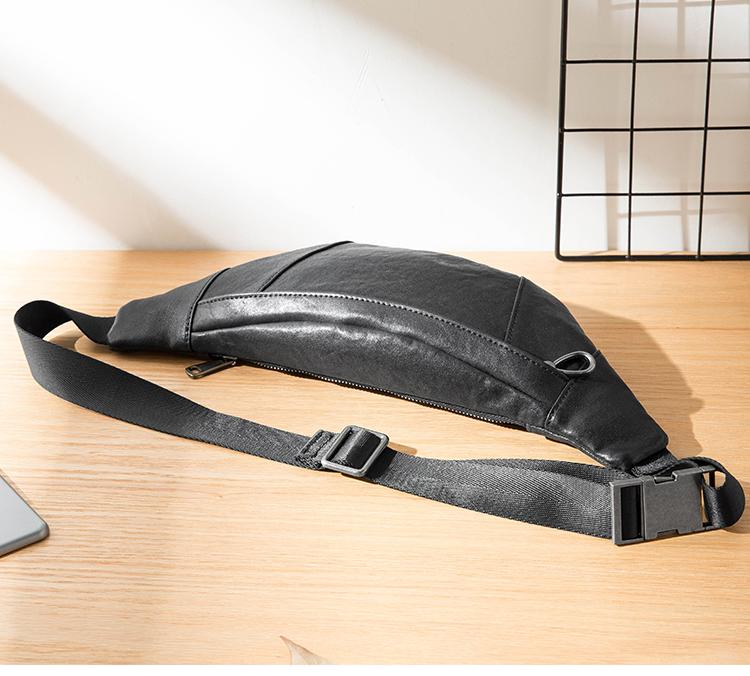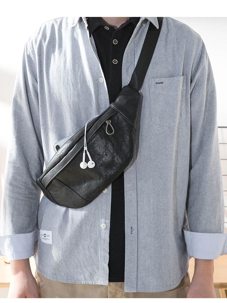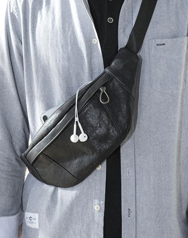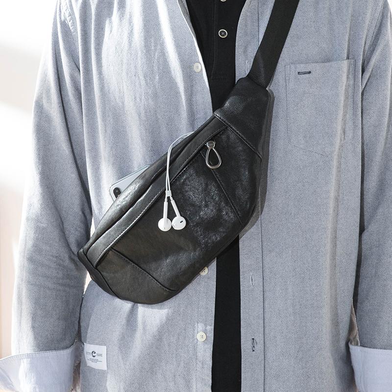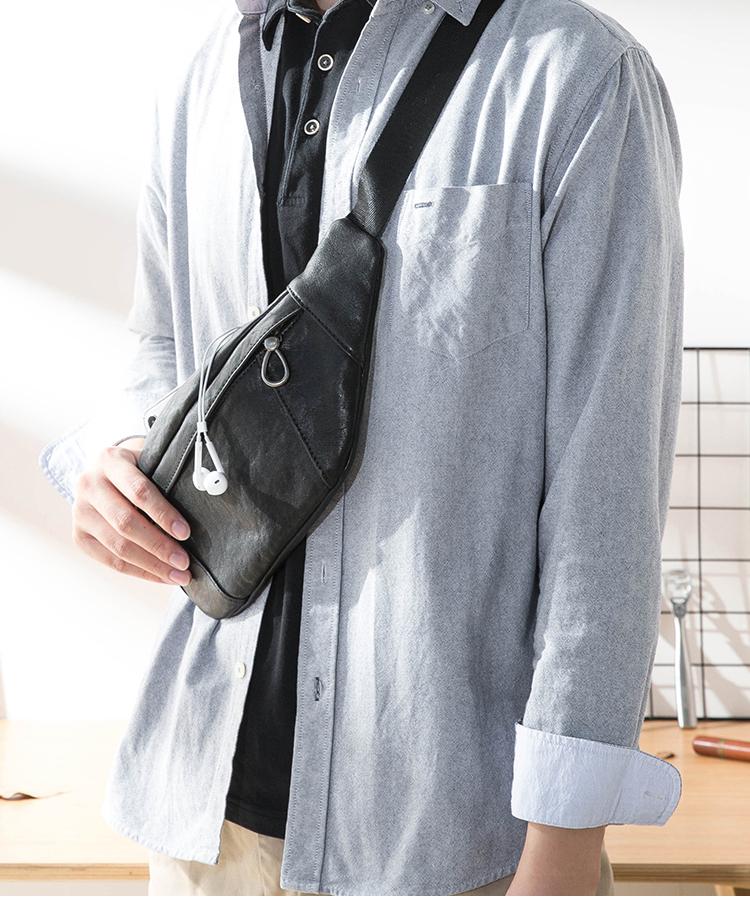 Design: Black Simple Leather Mens 8 inches Chest Bag Shoulder Bag Black Messenger Bags Side Bag for Men
