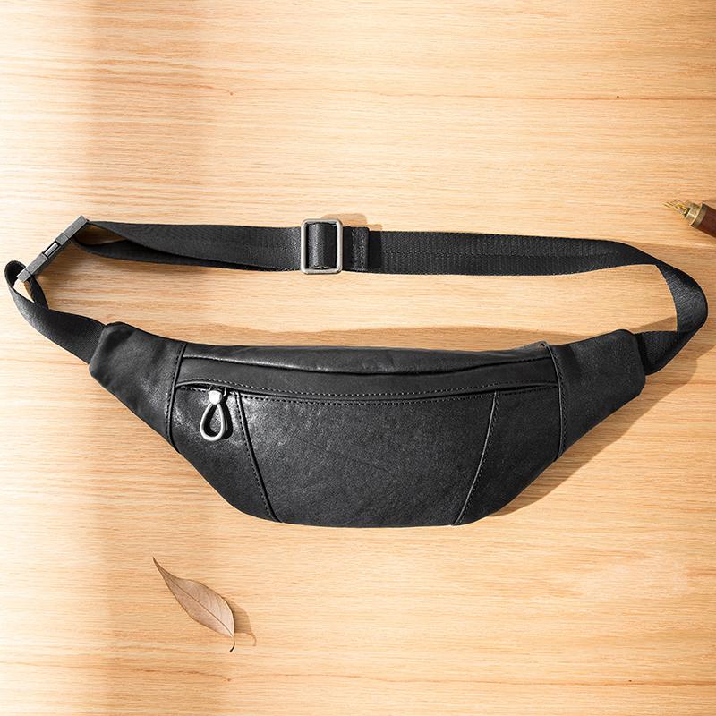 Style: Black Simple Leather Mens 8 inches Chest Bag Shoulder Bag Black Messenger Bags Side Bag for Men
