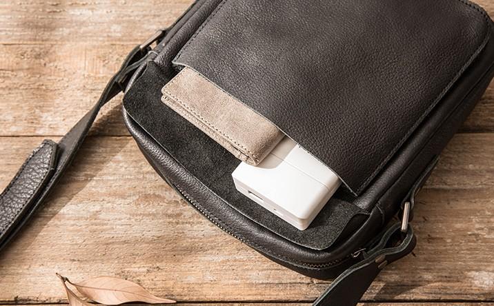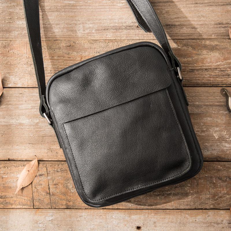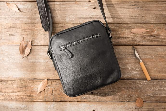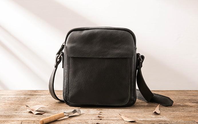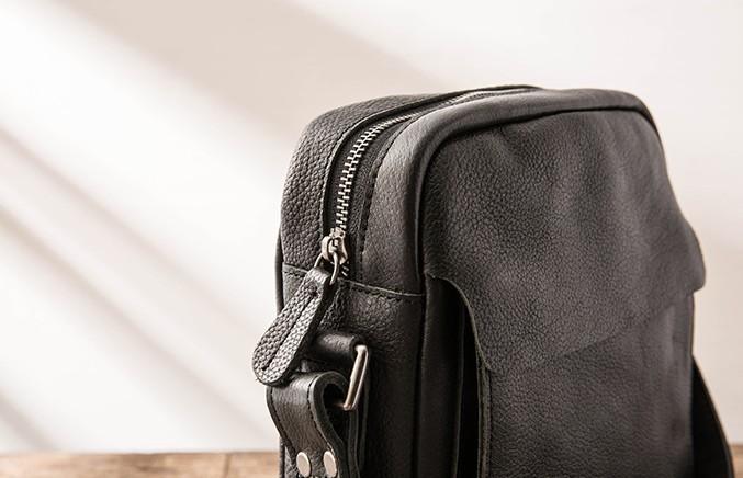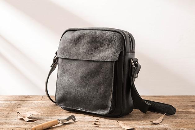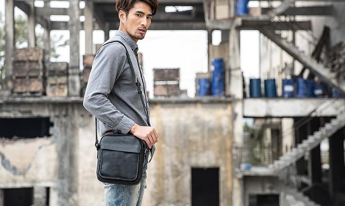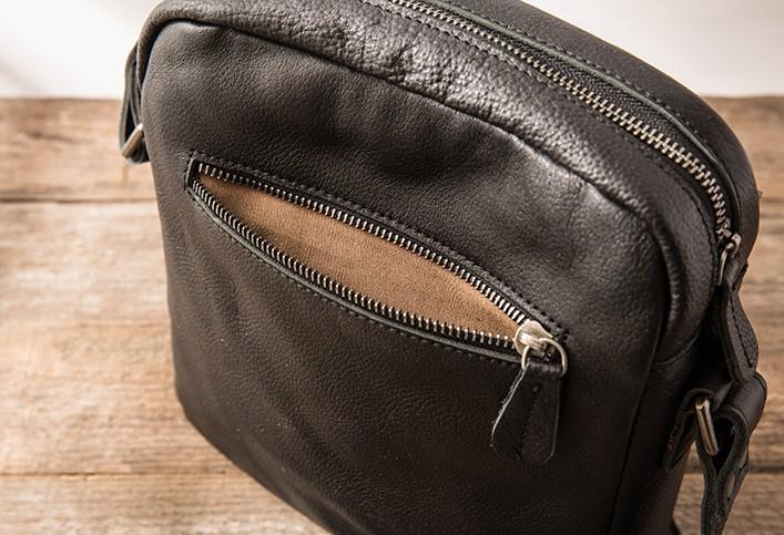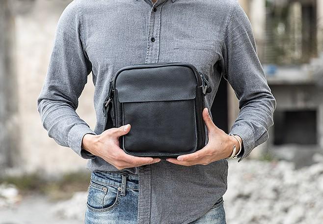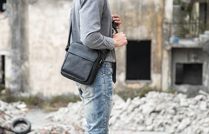 Design: Black Small Leather Mens Shoulder Bags Messenger Bags for Men