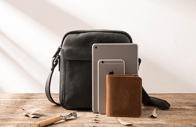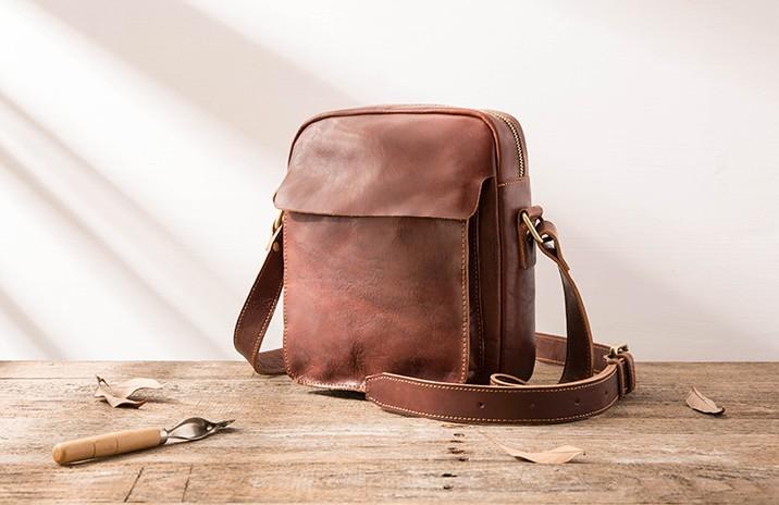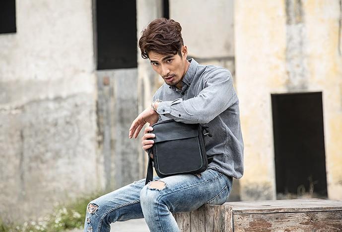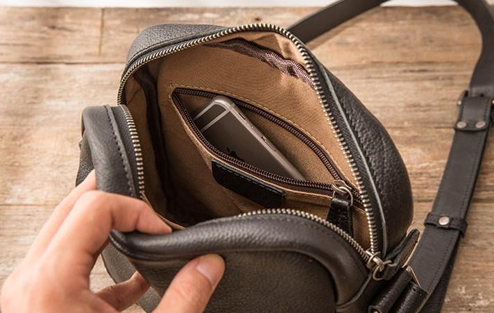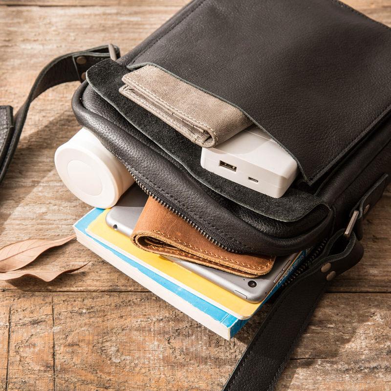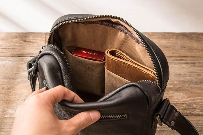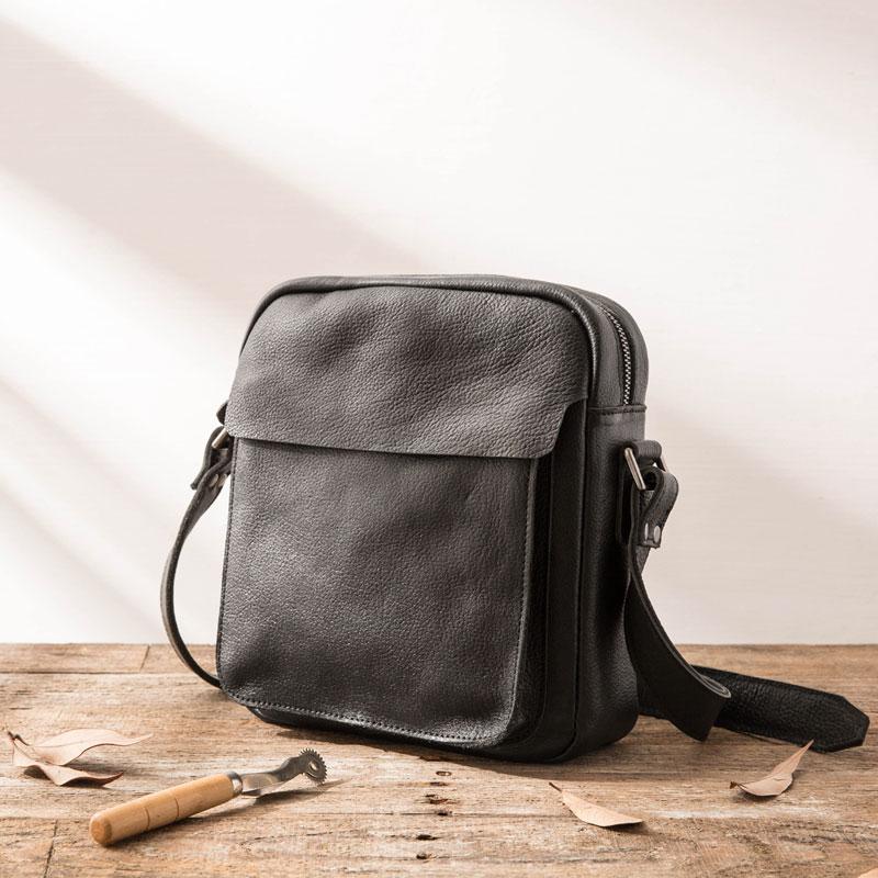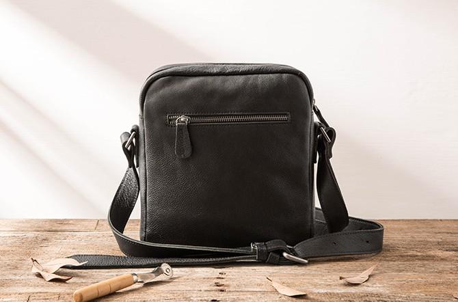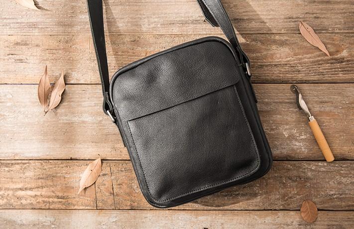 Design: Black Small Leather Mens Shoulder Bags Messenger Bags for Men