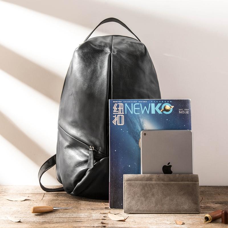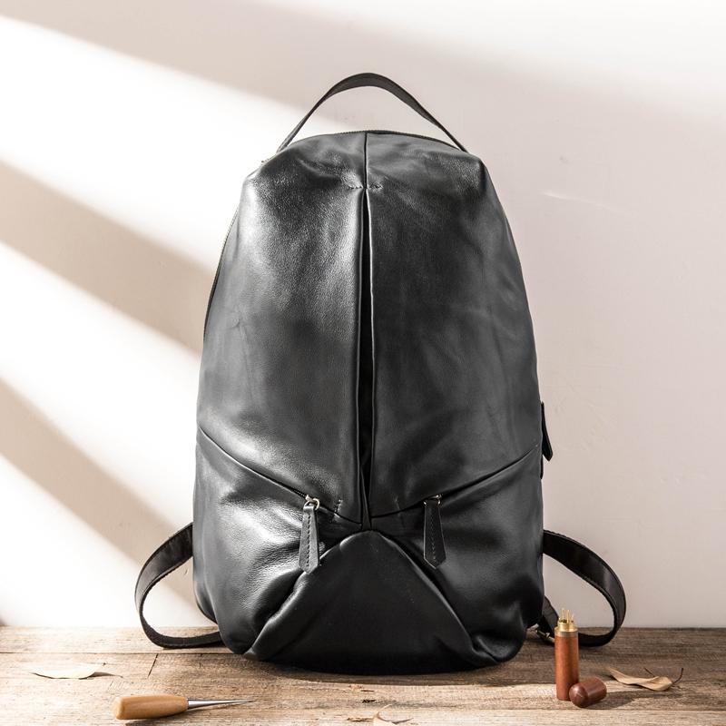 Style: Black Soft Mens Leather 15 inches College Bag Travel Backpacks Computer Backpack for men