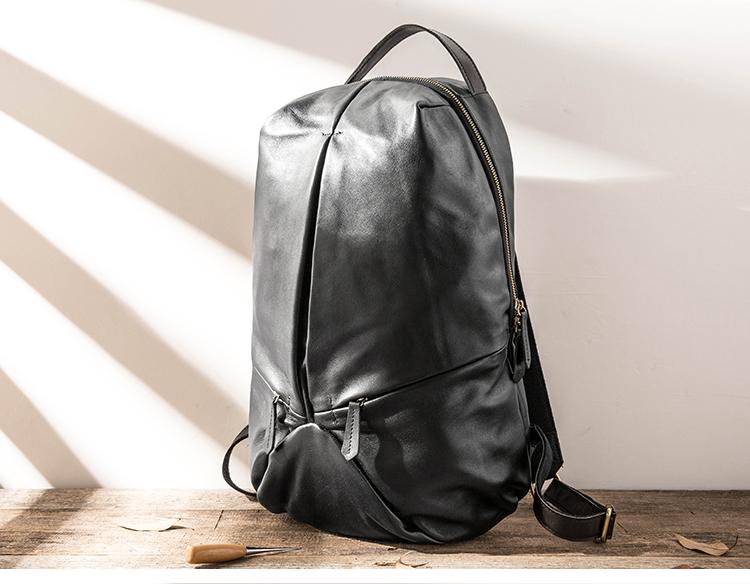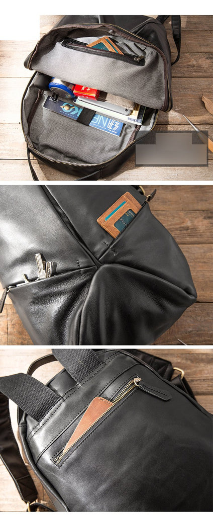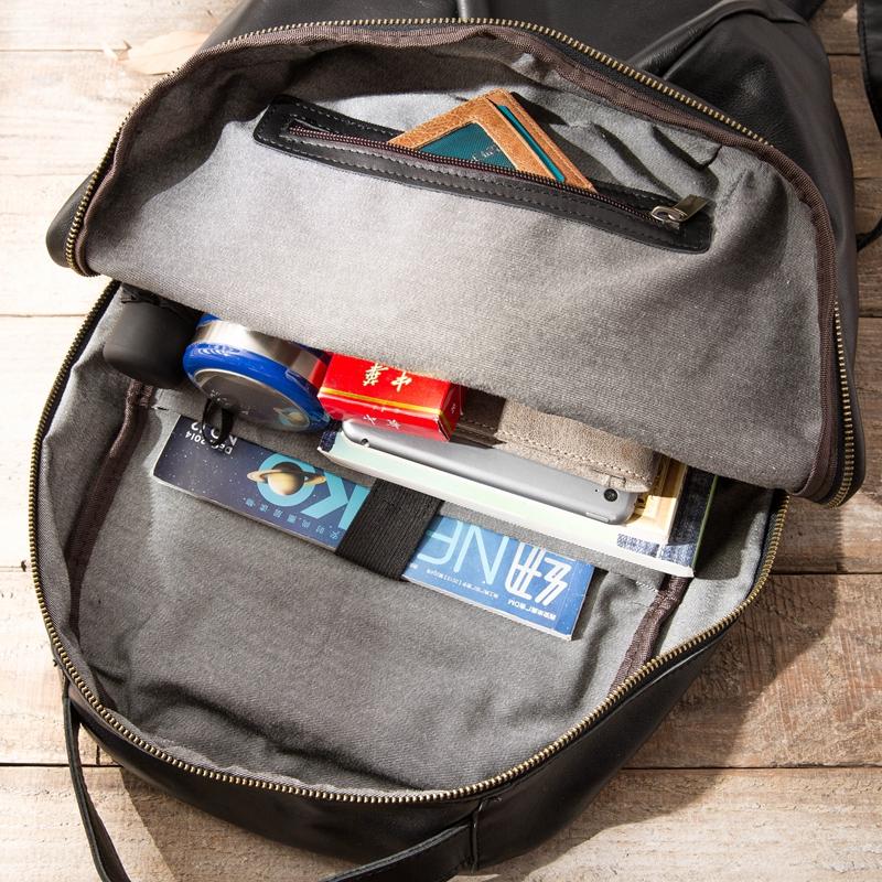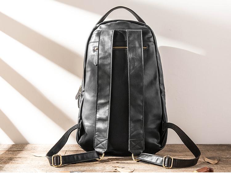 Design: Black Soft Mens Leather 15 inches College Bag Travel Backpacks Computer Backpack for men