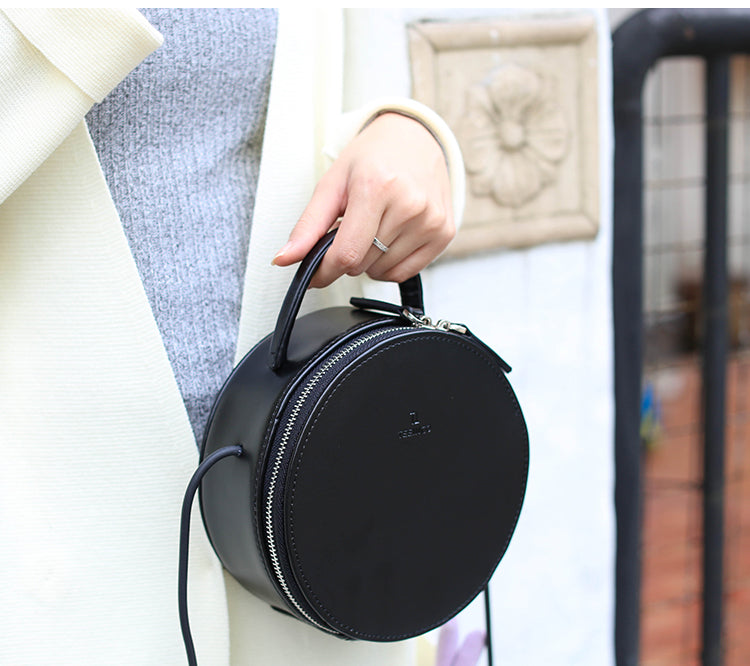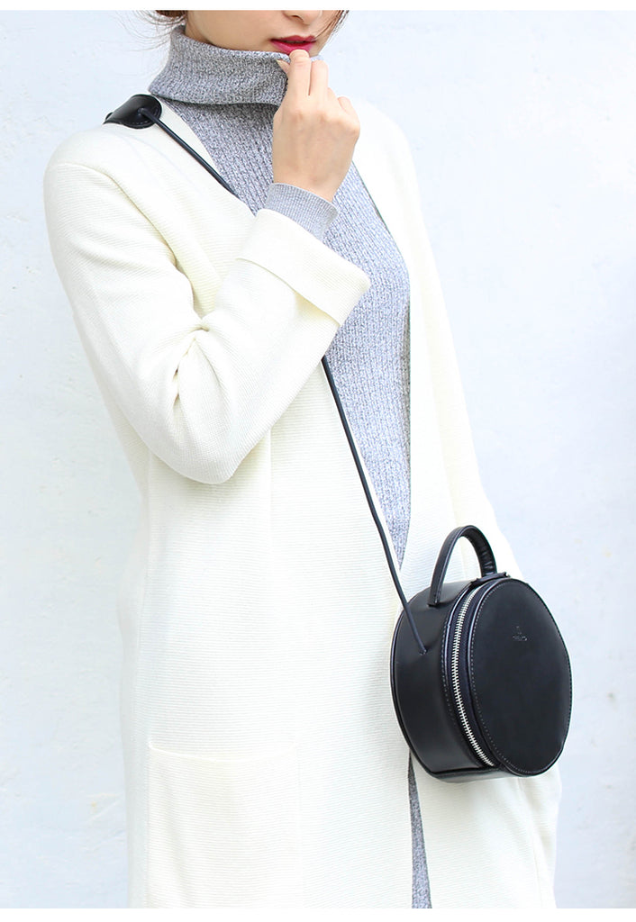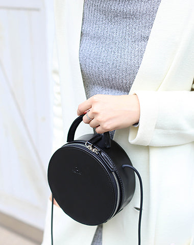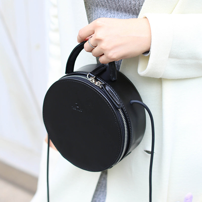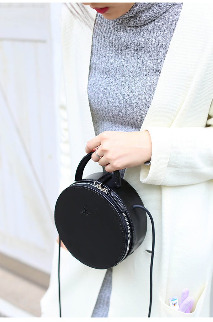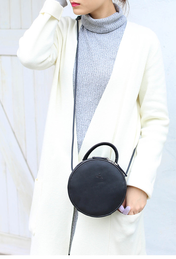 Design: Black Stylish LEATHER WOMENs Circle Handbags Round SHOULDER BAG Purses FOR WOMENOverview: