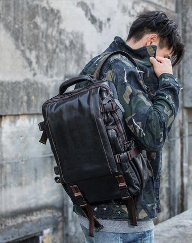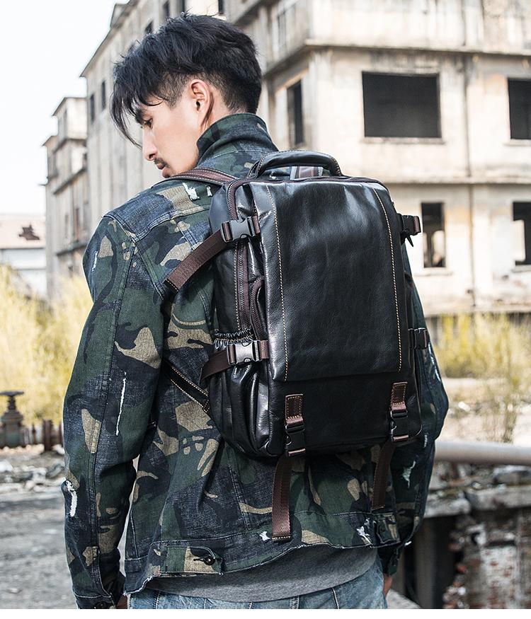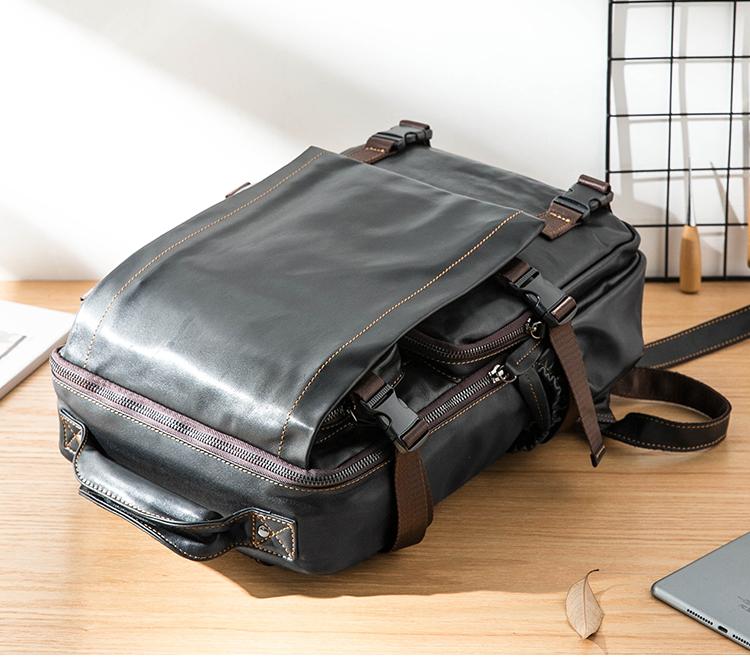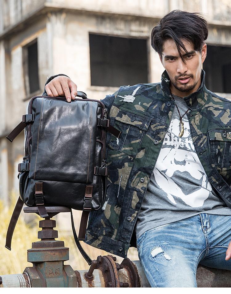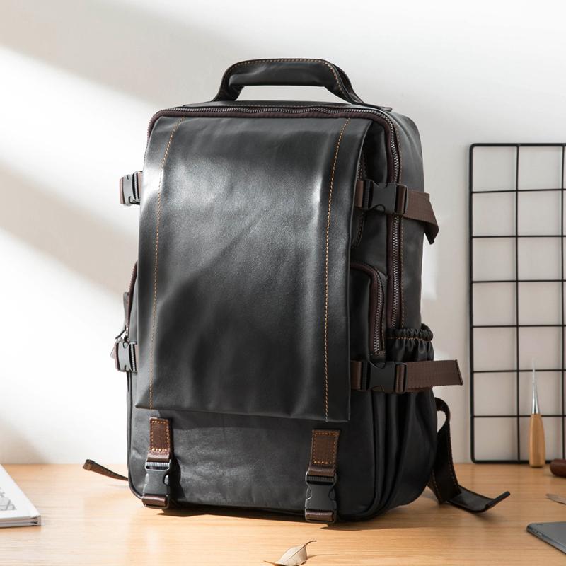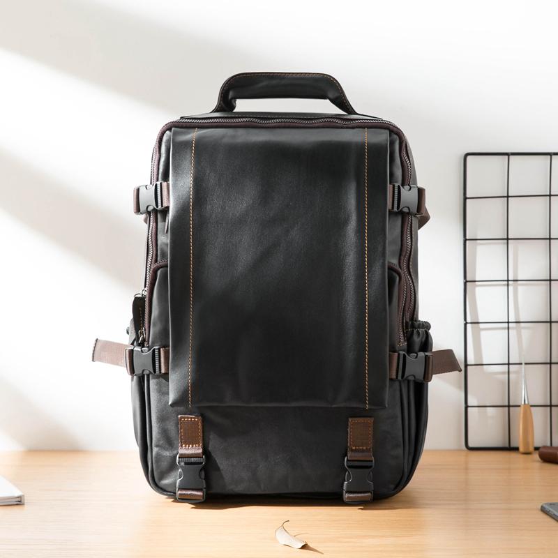 Design: Black Suede Leather Mens 13-inch Computer Backpacks Business Travel Backpacks College Backpack for men