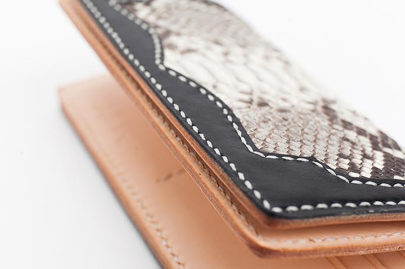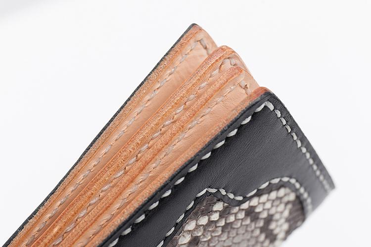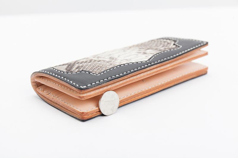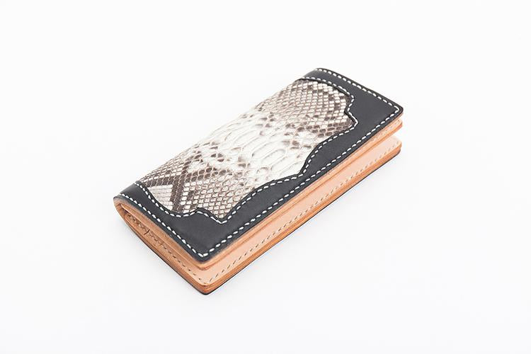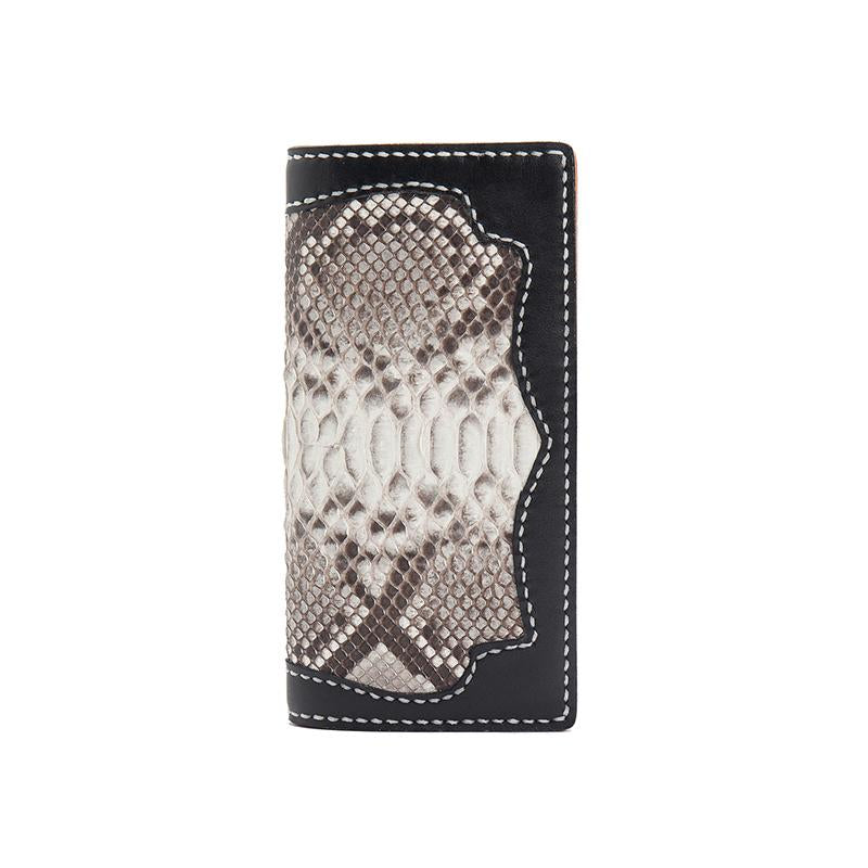 Design: Black Tanned Snakeskin Leather Mens Long Wallet Bifold Card Wallet Coin Purse For Men