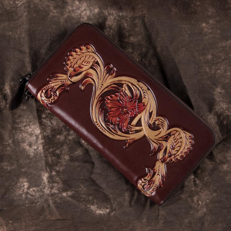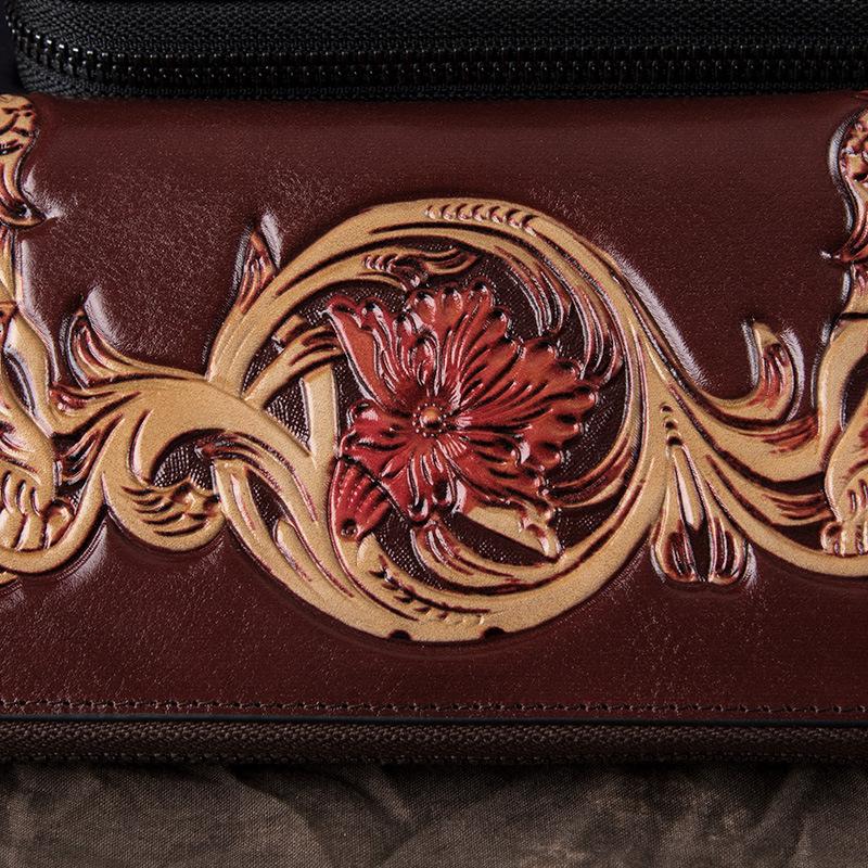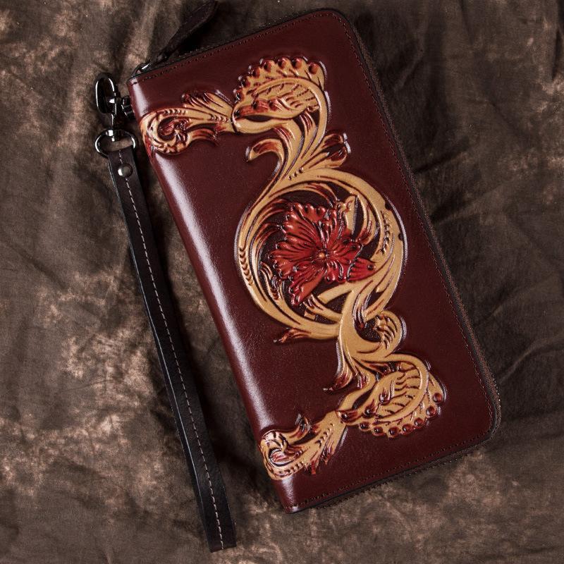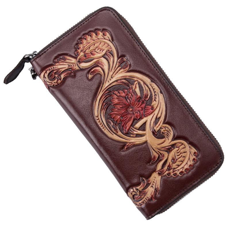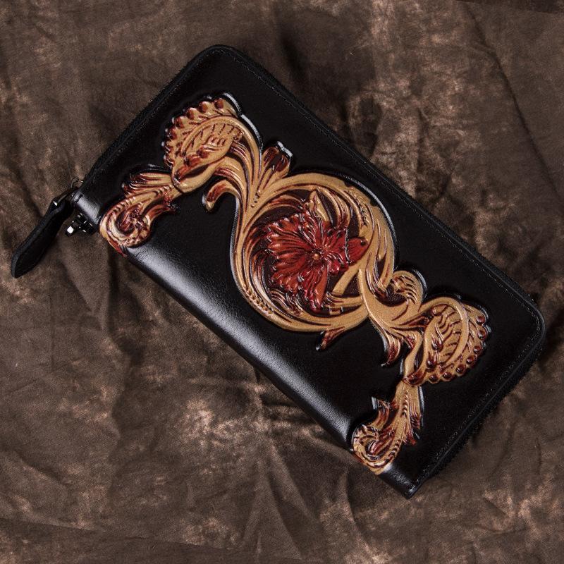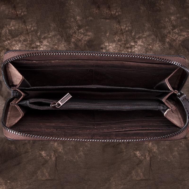 Design: Black Waxed Oil Leather Men's Bifold Long Wallet Clutch Bag Brown Handbag For Women