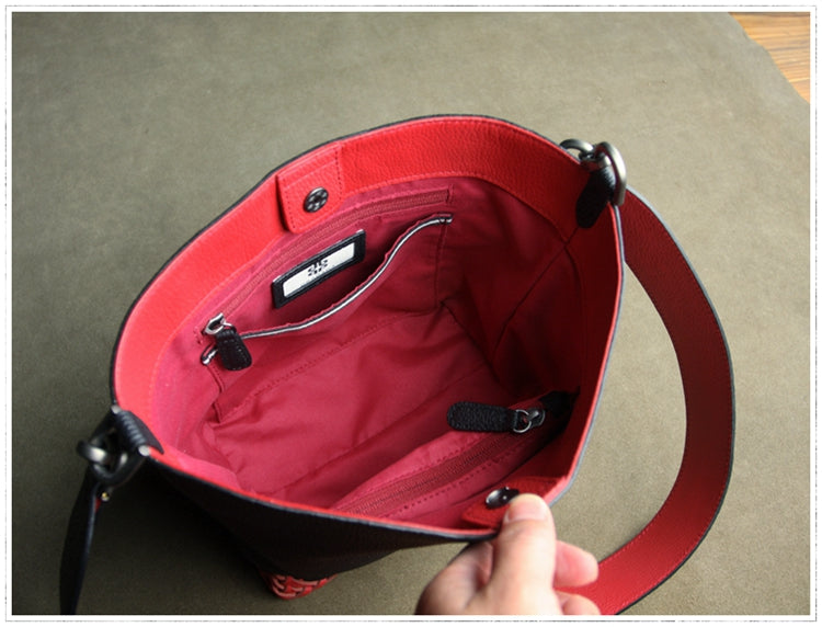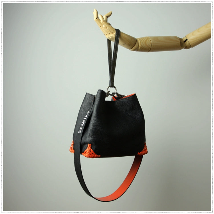 Design: Black Womens Leather Bucket Shoulder Purse Womens Barrel Black Leather Handbag Shoulder Bag for Ladies