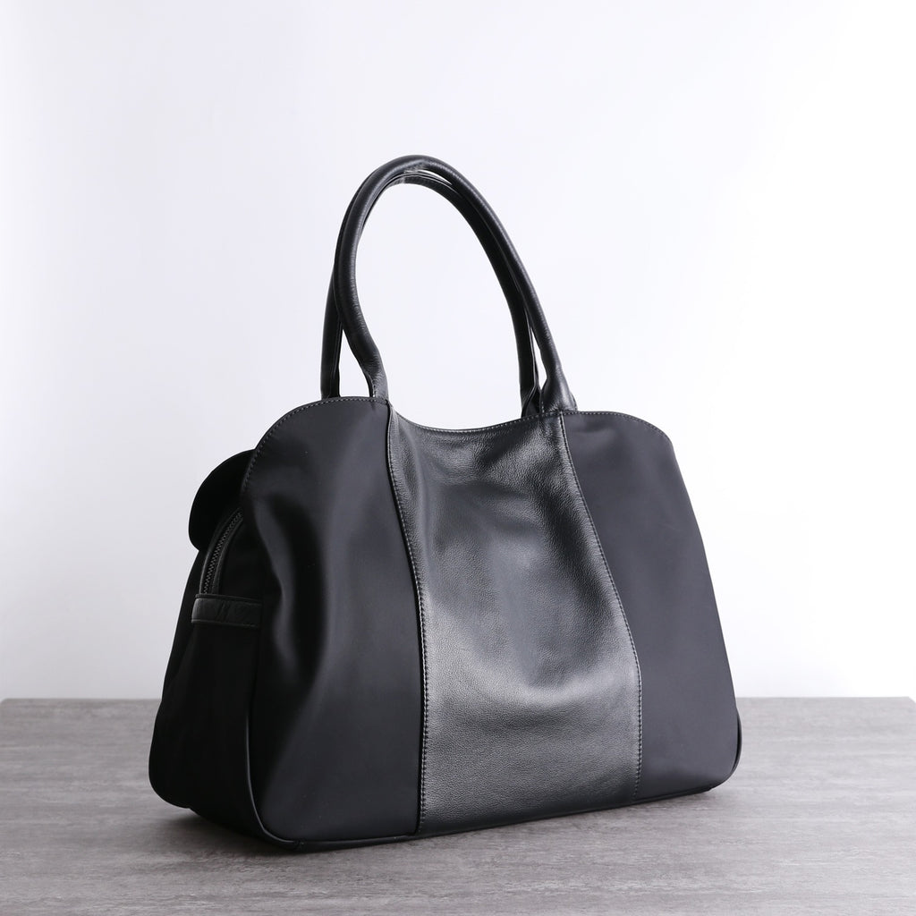 Style:  Black Womens Nylon Leather Shopper Bag Totes Womens Nylon Shoulder Shopper Purse Black Nylon Handbag Purse for Ladies