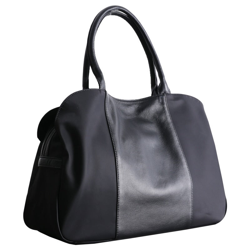 Design: Black Womens Nylon Leather Shopper Bag Totes Womens Nylon Shoulder Shopper Purse Black Nylon Handbag Purse for Ladies