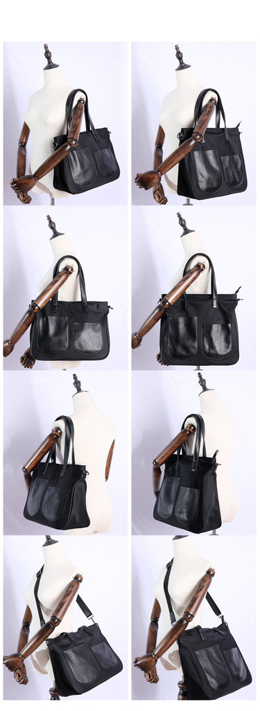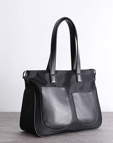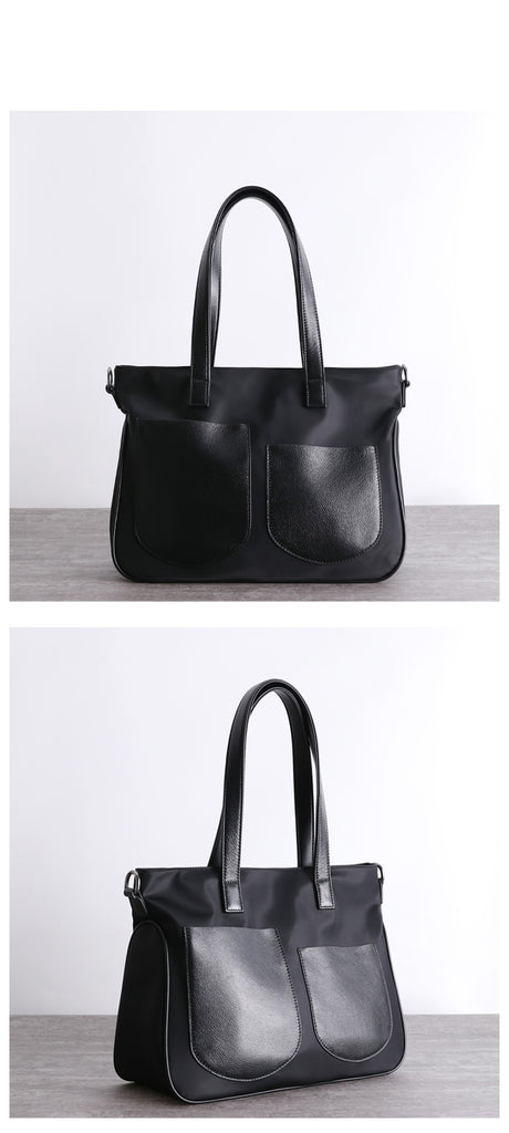 Style:  Black Womens Nylon Leather Shopper Tote Womens Nylon Shoulder Tote Black Nylon Handbag Purse for Ladies
