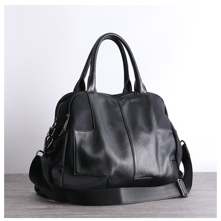 Style: Black Womens Nylon Leather Travel Bag Totes Womens Black Nylon Shoulder Travel Purse Nylon Handbag Purse for Ladies
