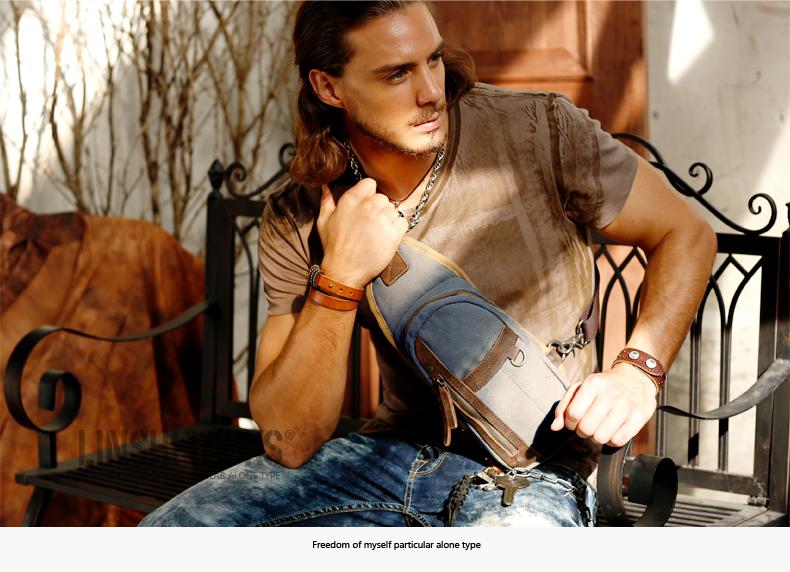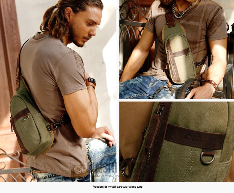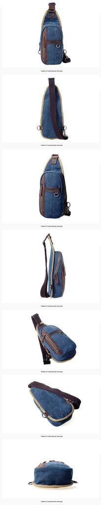 Design: Blue Canvas Sling Backpack Men's Sling Bag Khaki Chest Bag Canvas One shoulder Backpack For Men
