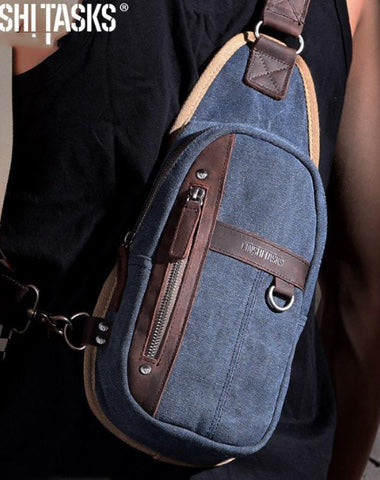 Style: Blue Canvas Sling Backpack Men's Sling Bag Khaki Chest Bag Canvas One shoulder Backpack For Men