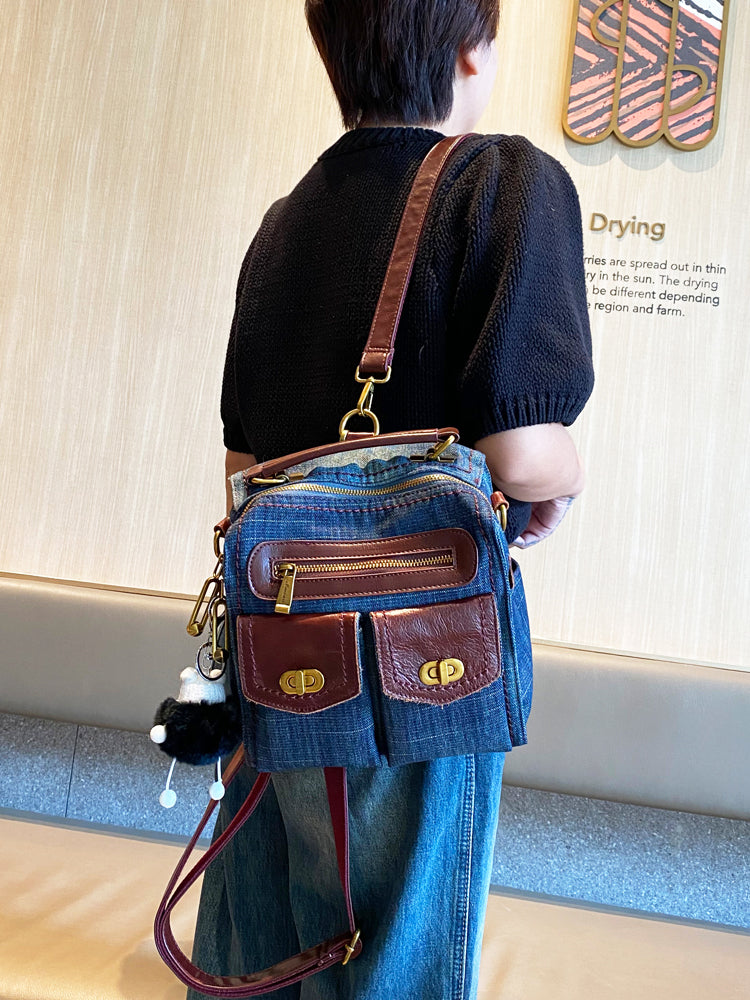 Style: Convertible Denim Mini Backpack Bag Crossbody Bag Blue Convertible Denim Handbag Shoulder Bag