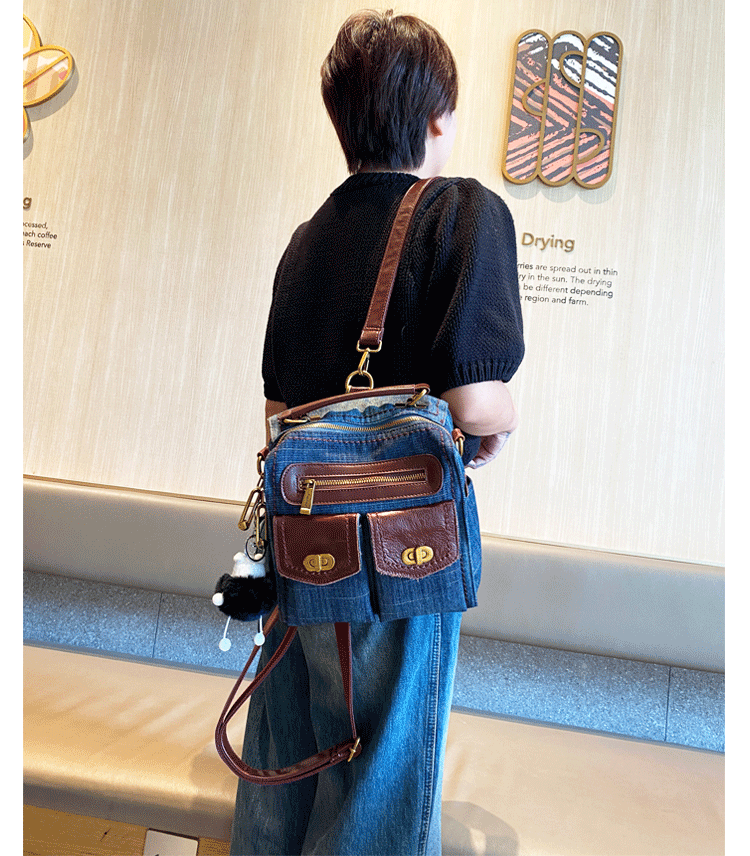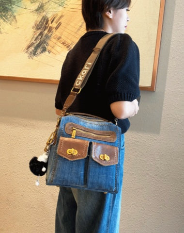 Design: Convertible Denim Mini Backpack Bag Crossbody Bag Blue Convertible Denim Handbag Shoulder Bag