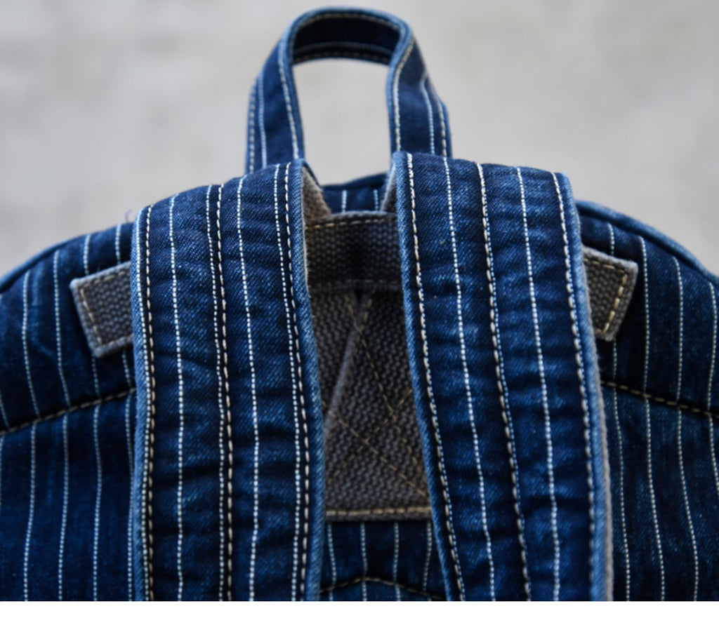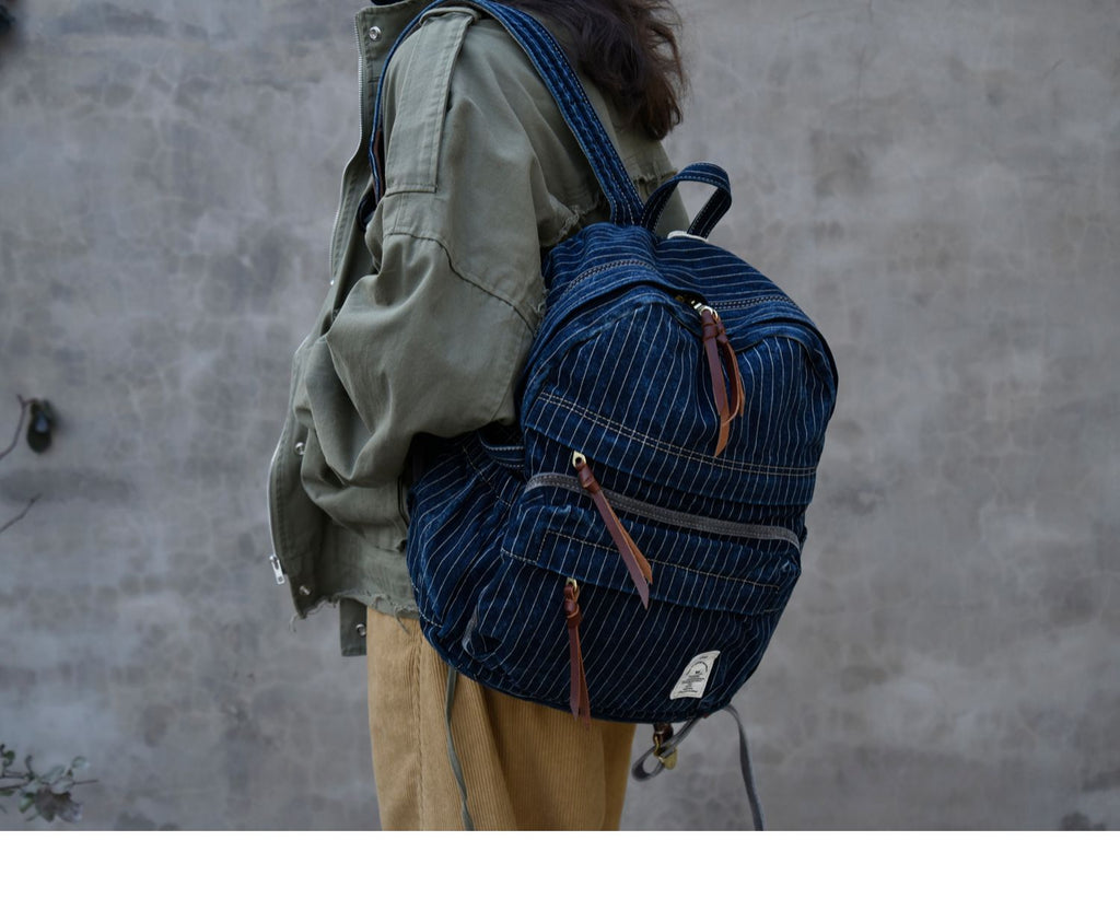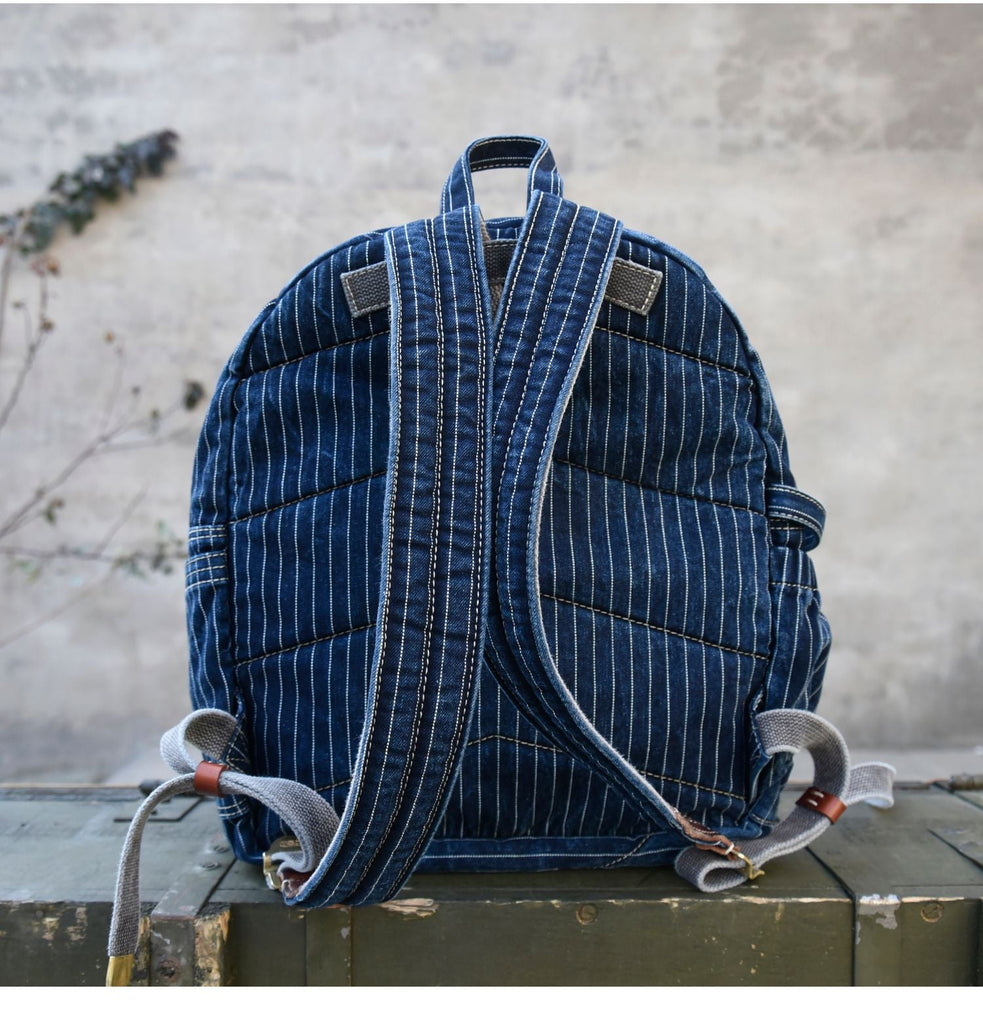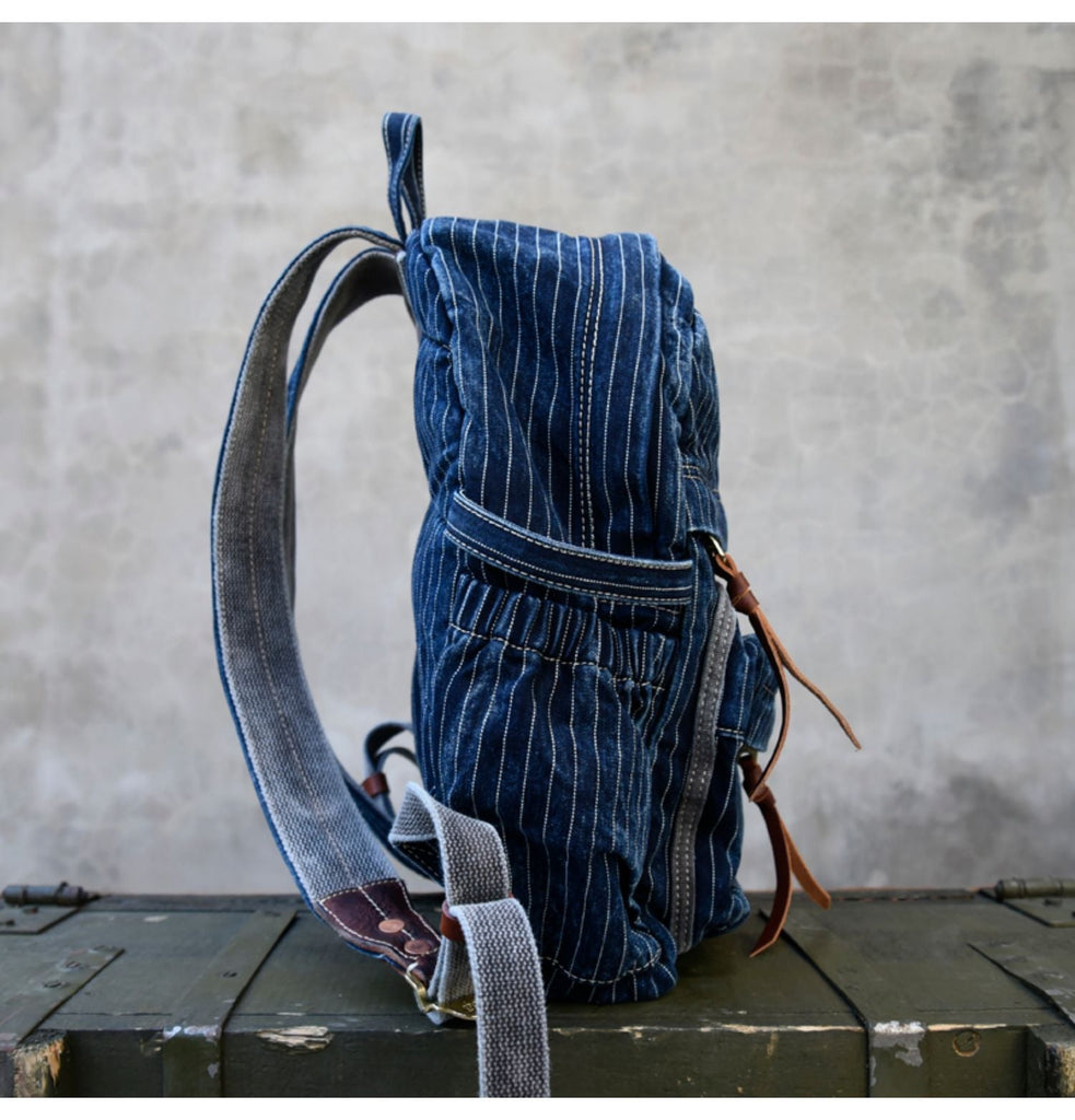 Style: Blue Denim Backpack for Women Striped Jean Backpack Mens Striped Backpack