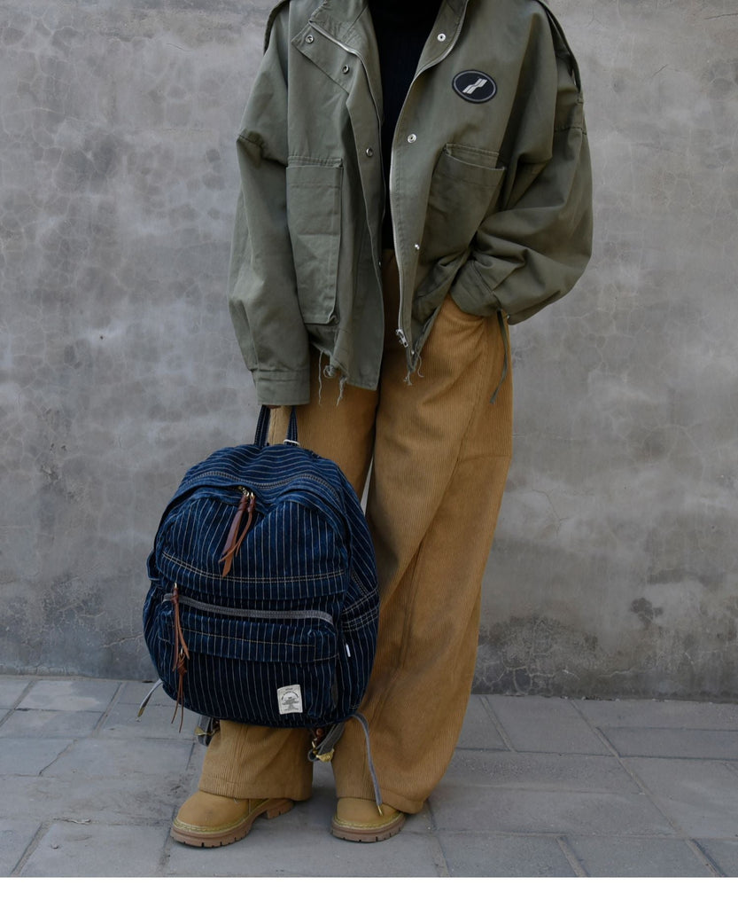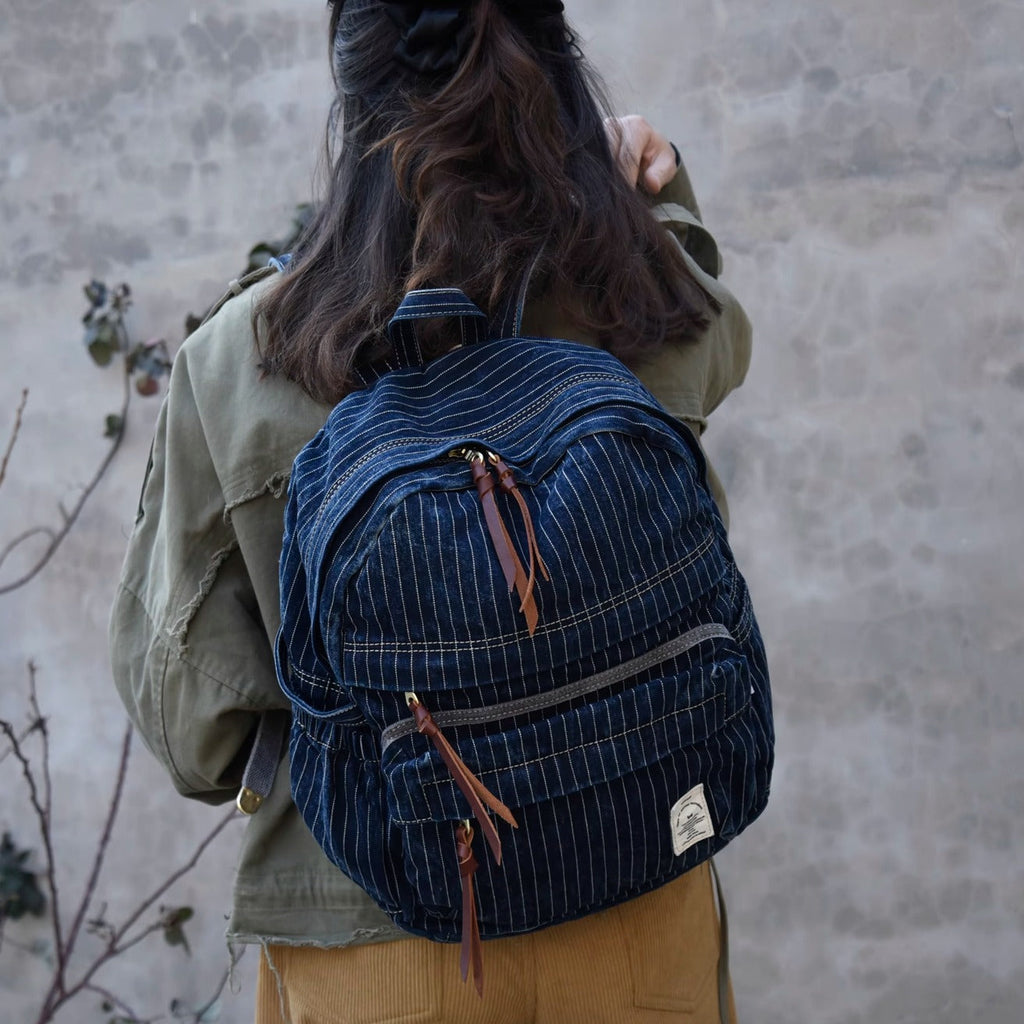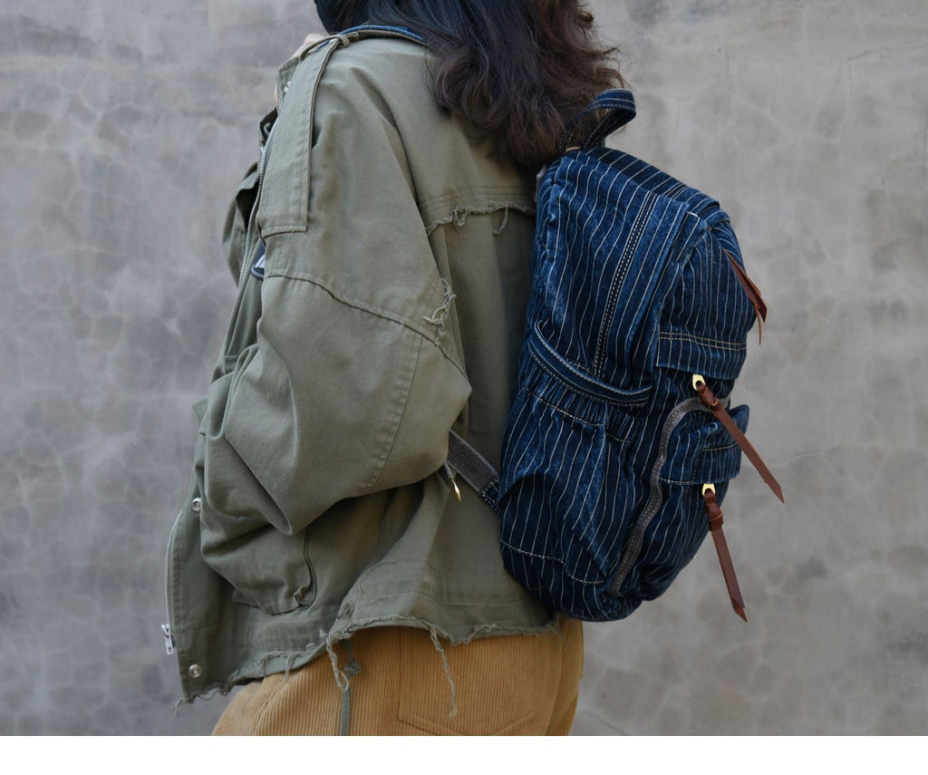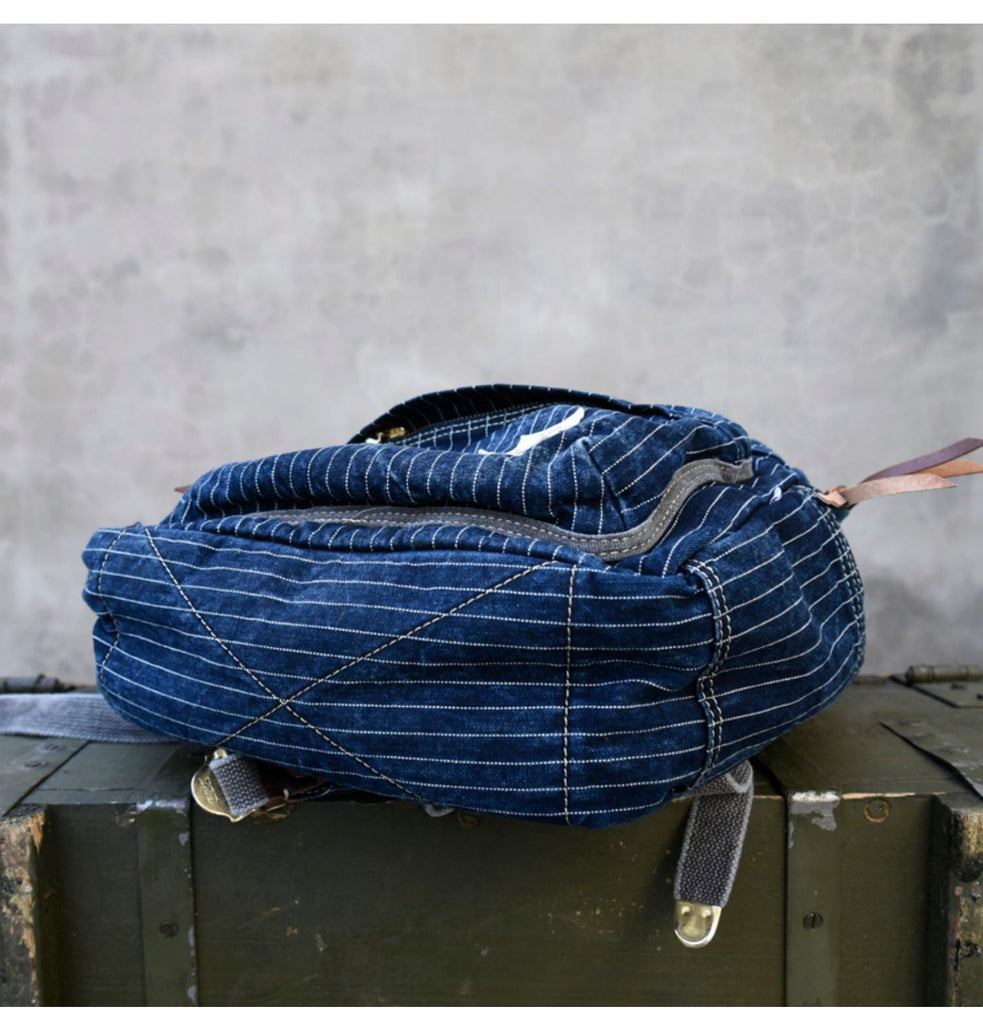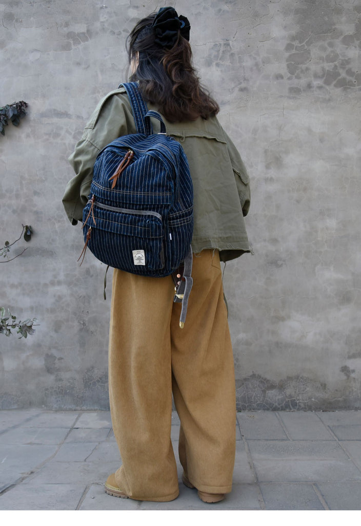 Style: Blue Denim Backpack for Women Striped Jean Backpack Mens Striped Backpack