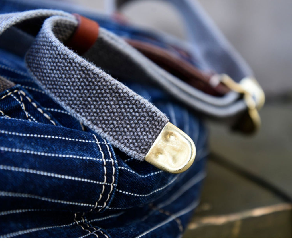 Design: Blue Denim Backpack for Women Striped Jean Backpack Mens Striped Backpack
