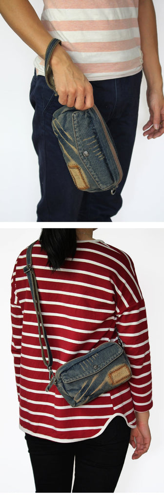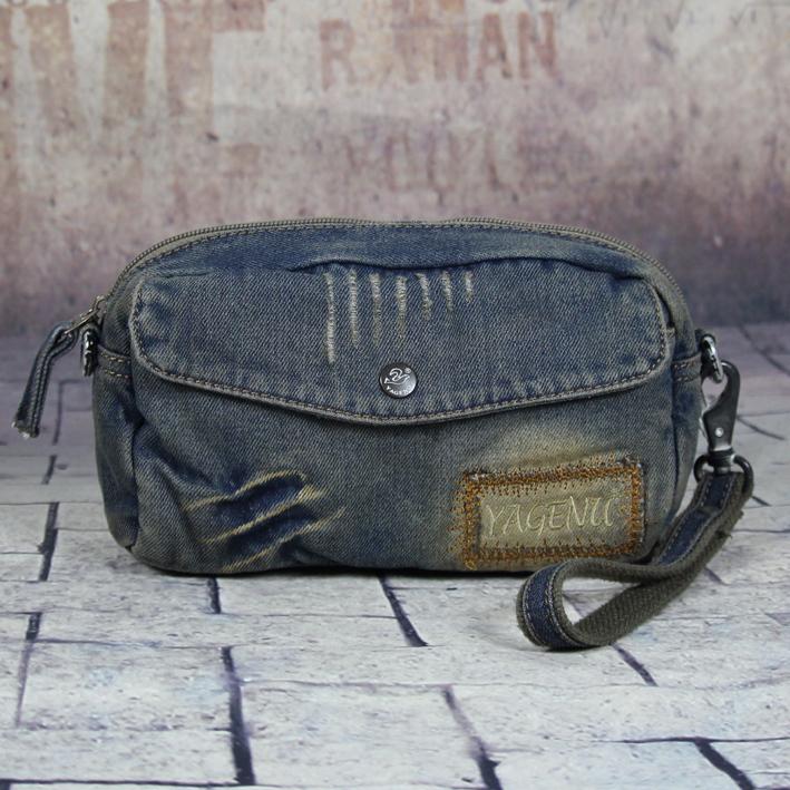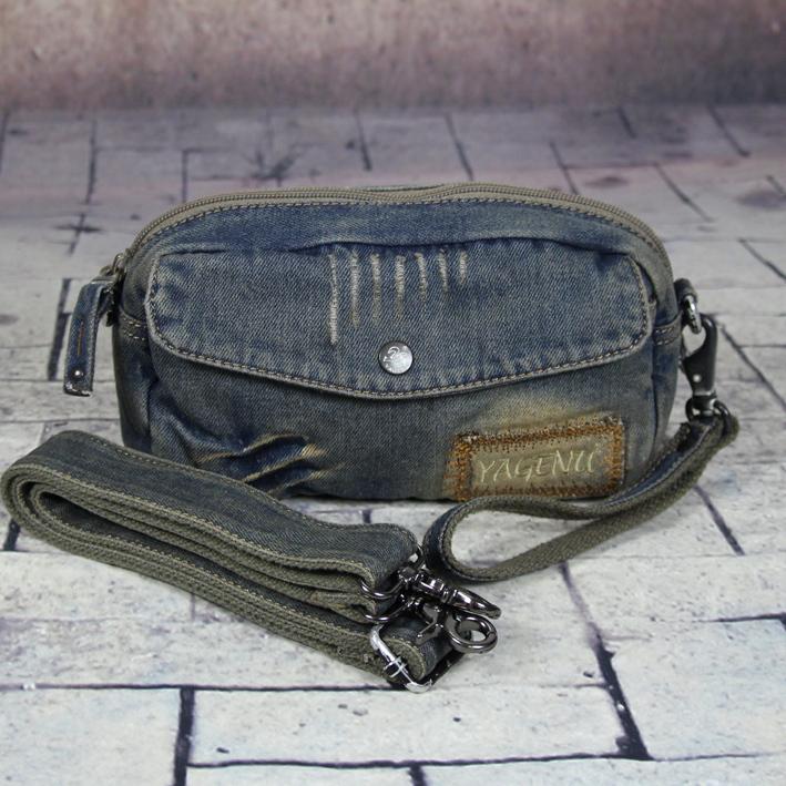 Style: Blue Denim Mens Casual Small Messenger Bags Jean Clutch Bag Courier Bag For Men