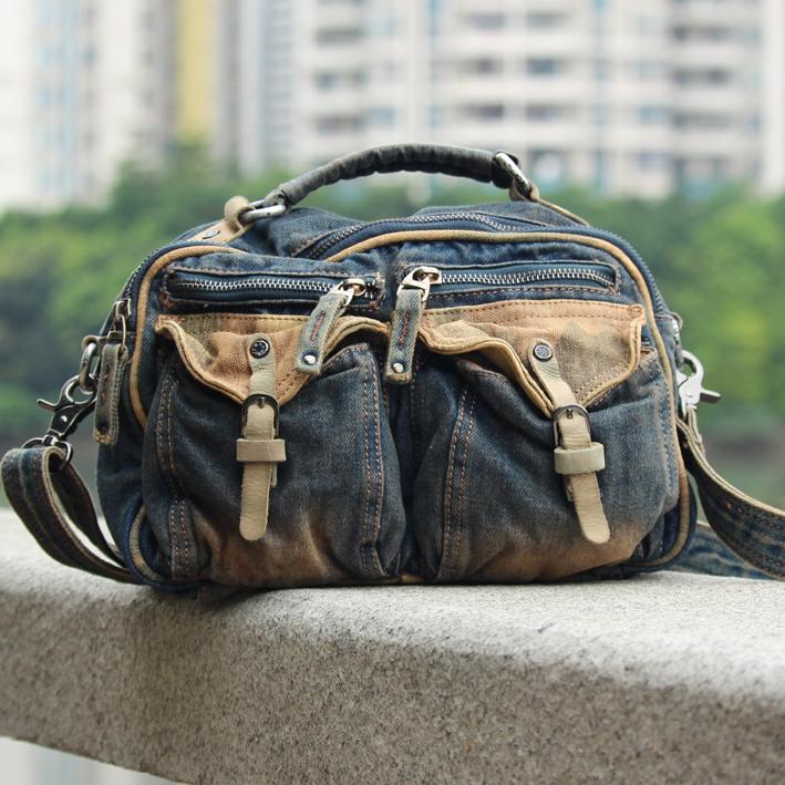 Design: Blue Denim Mens Casual Small Messenger Bag Jean Postman Bags Courier Bag For Men