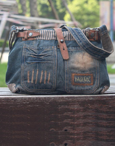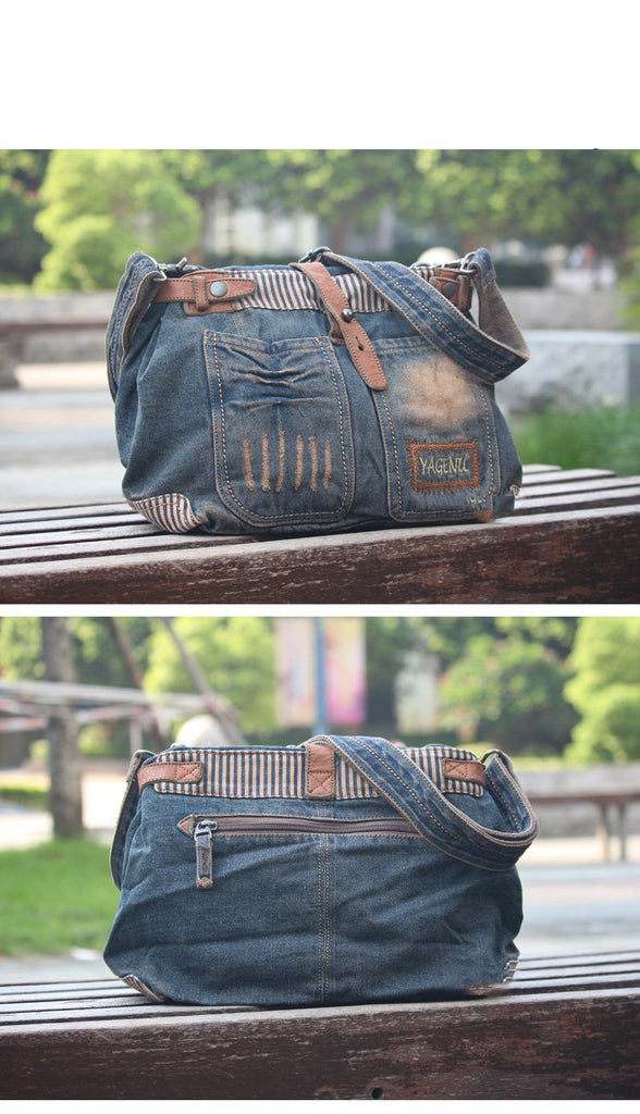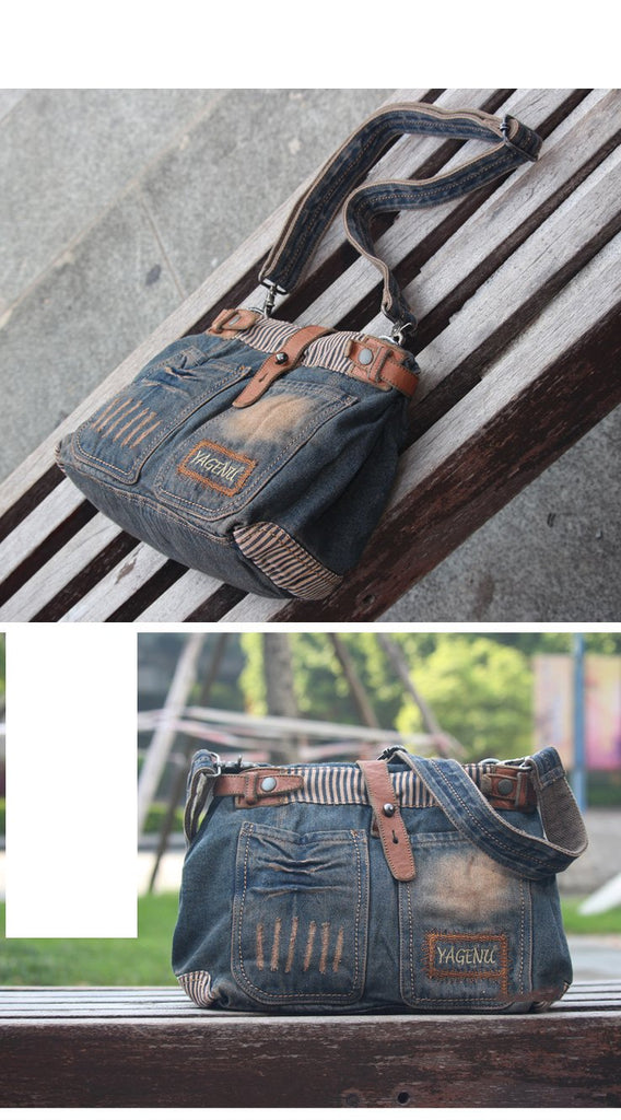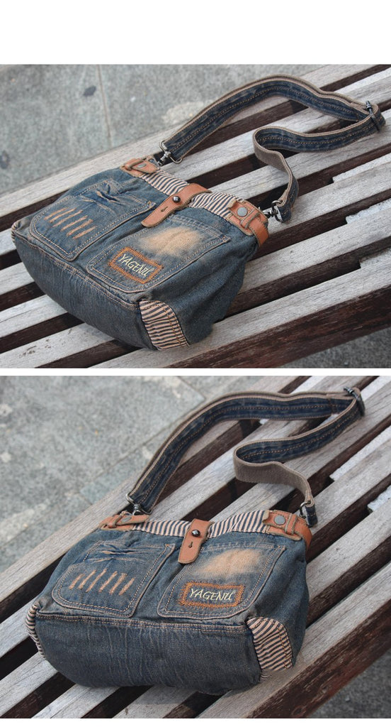 Design: Blue Denim Mens Casual Small Messenger Bags Jean Postman Bag Courier Bag For Men