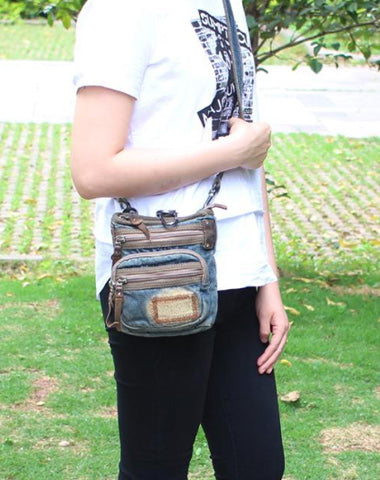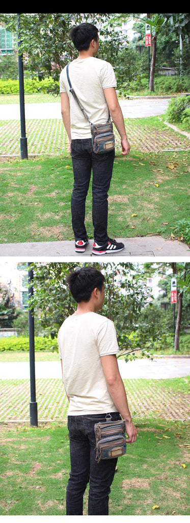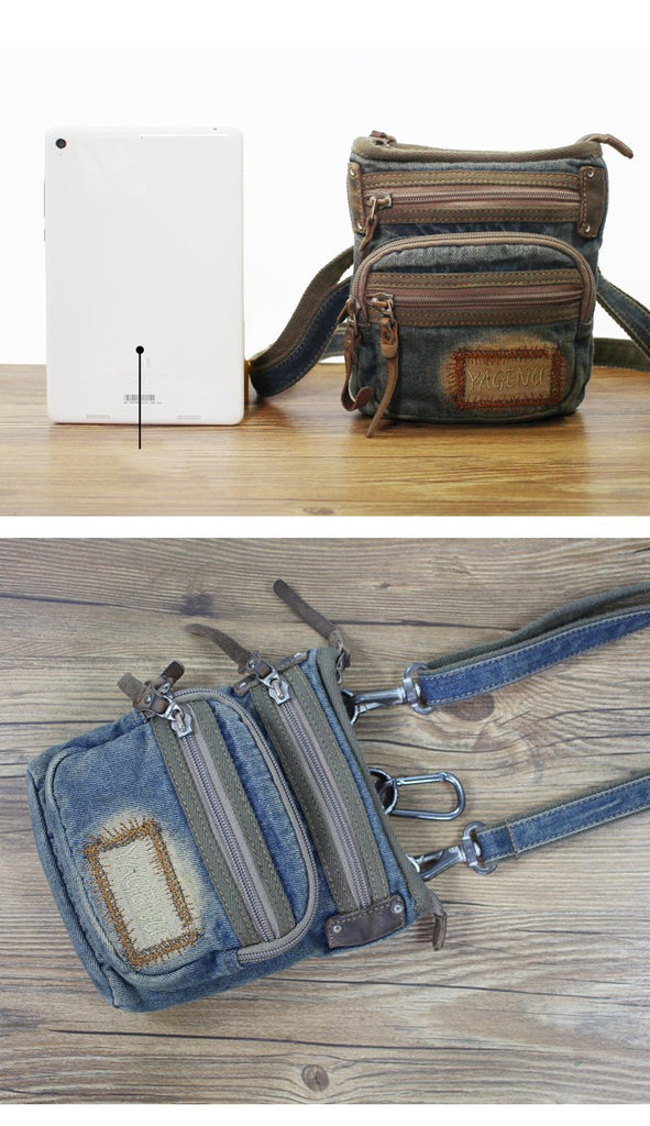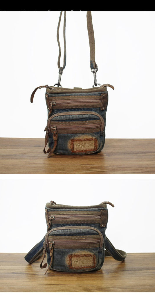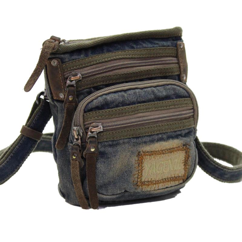 Style: Blue Denim Mens Casual Small Vertical Messenger Bag Jean Postman Bag Courier Bag For Men