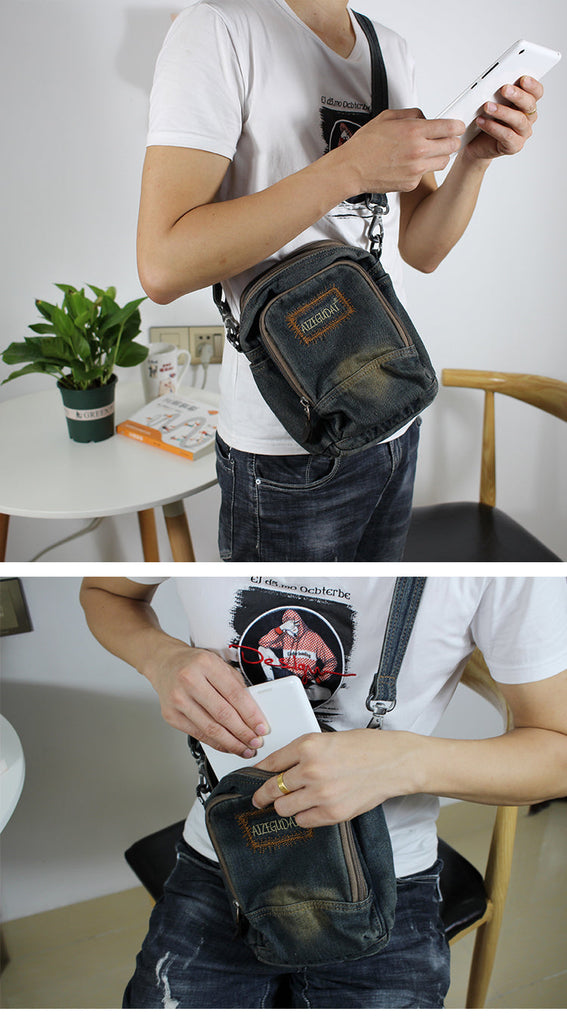 Design: Blue Denim Mens Small Vertical Messenger Bag Denim Side Bag Small Crossbody Bag For Women
