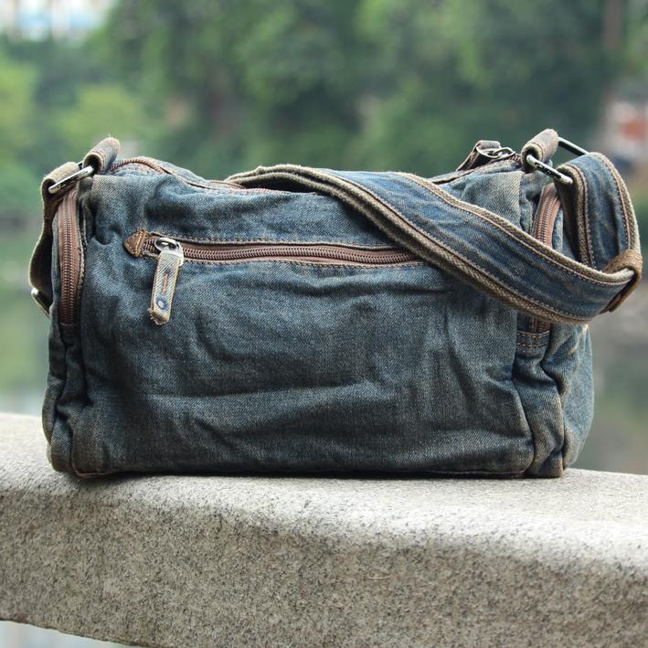 Style: Blue Denim Mens Womens Side Bag Travel Bag Blue Jean Messenger Bag For Women