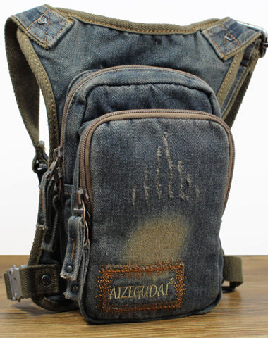 Design: Mens Denim Thigh Bag Fanny Pack for Men Drop Leg Bag Blue Denim Bum Bag Waist Bags