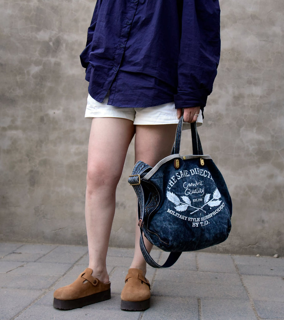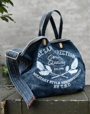 Style: Blue Denim Tote Handbag Denim Tote Bag Blue Denim Tote Shoulder Bag Jean Tote Bag