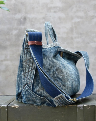 Design: Blue Denim Tote Handbag Washed Denim Tote Bag Stone Washed Denim Tote Shoulder Bag