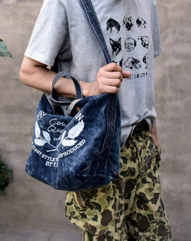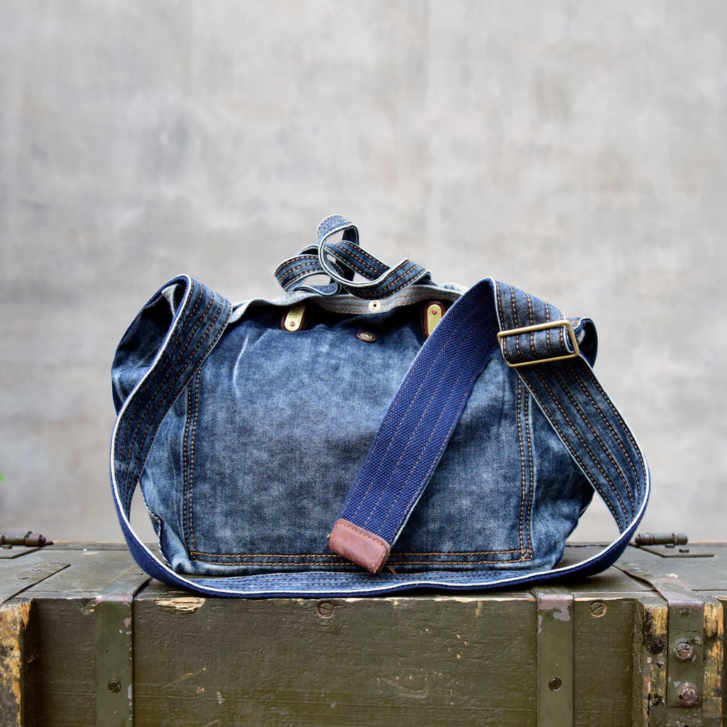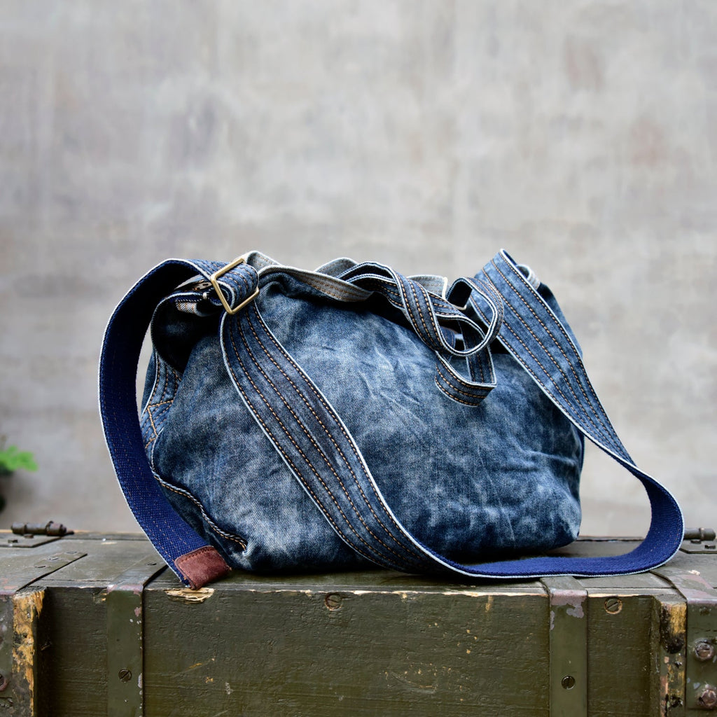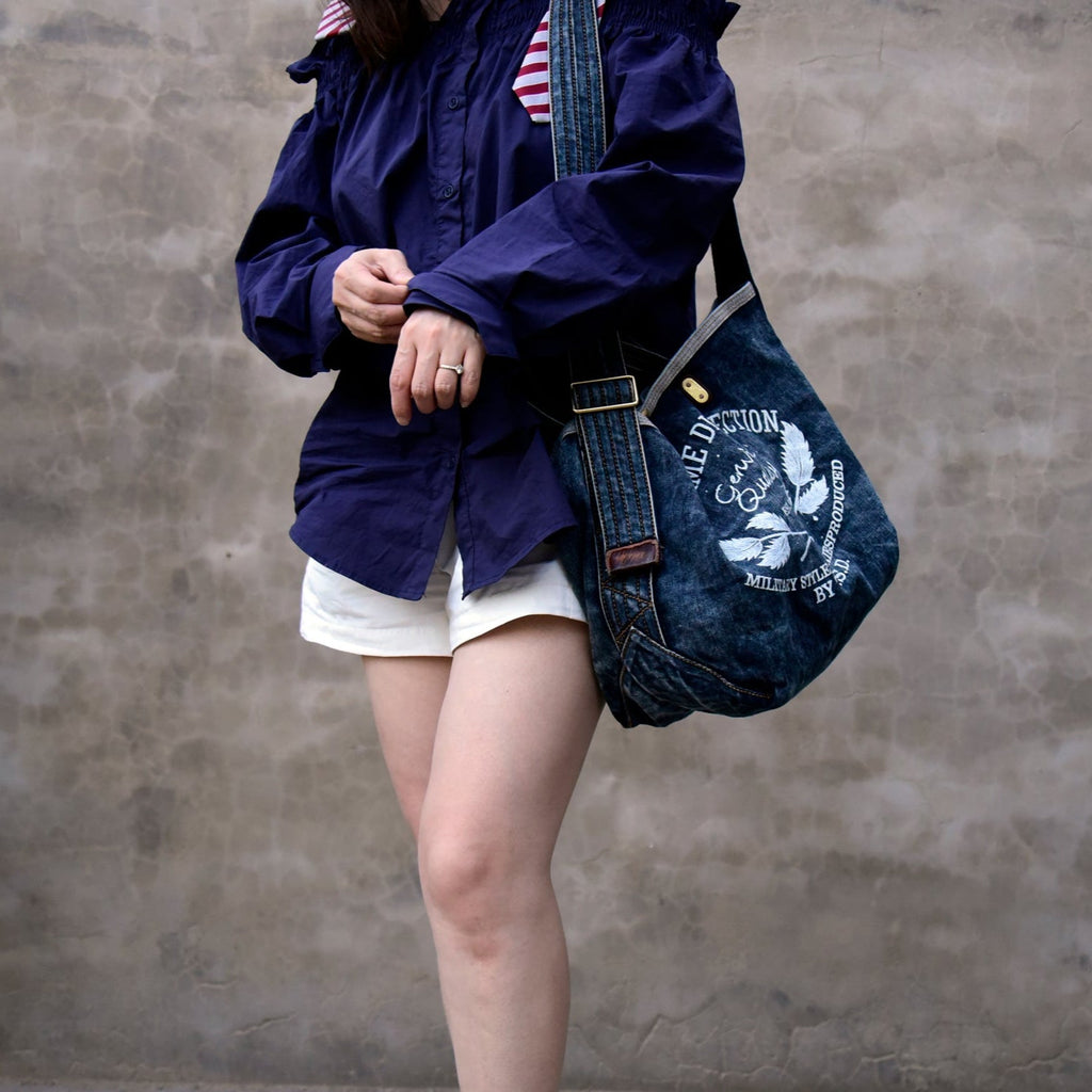 Style: Blue Denim Tote Handbag Denim Tote Bag Blue Denim Tote Shoulder Bag Jean Tote Bag