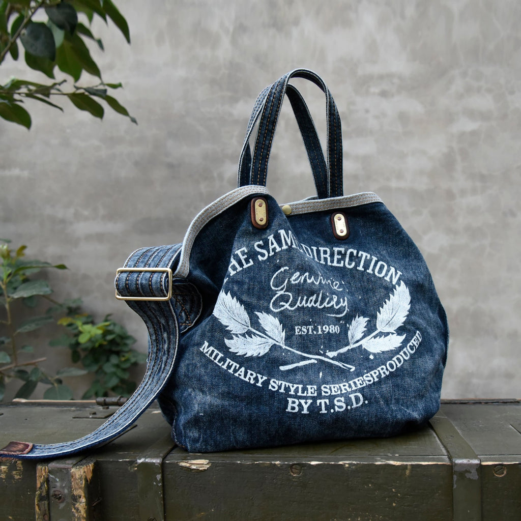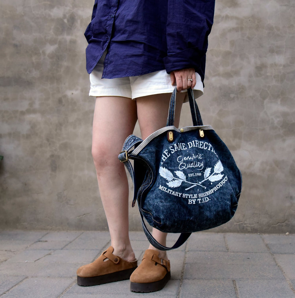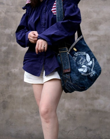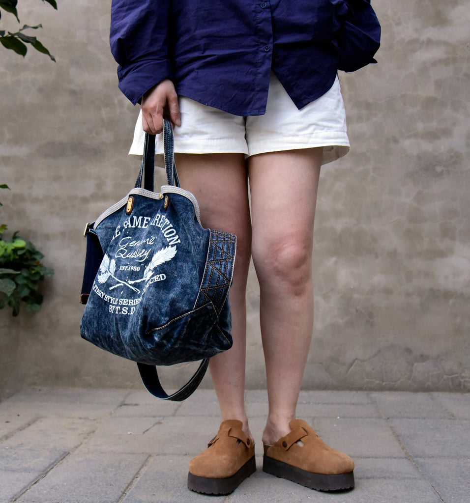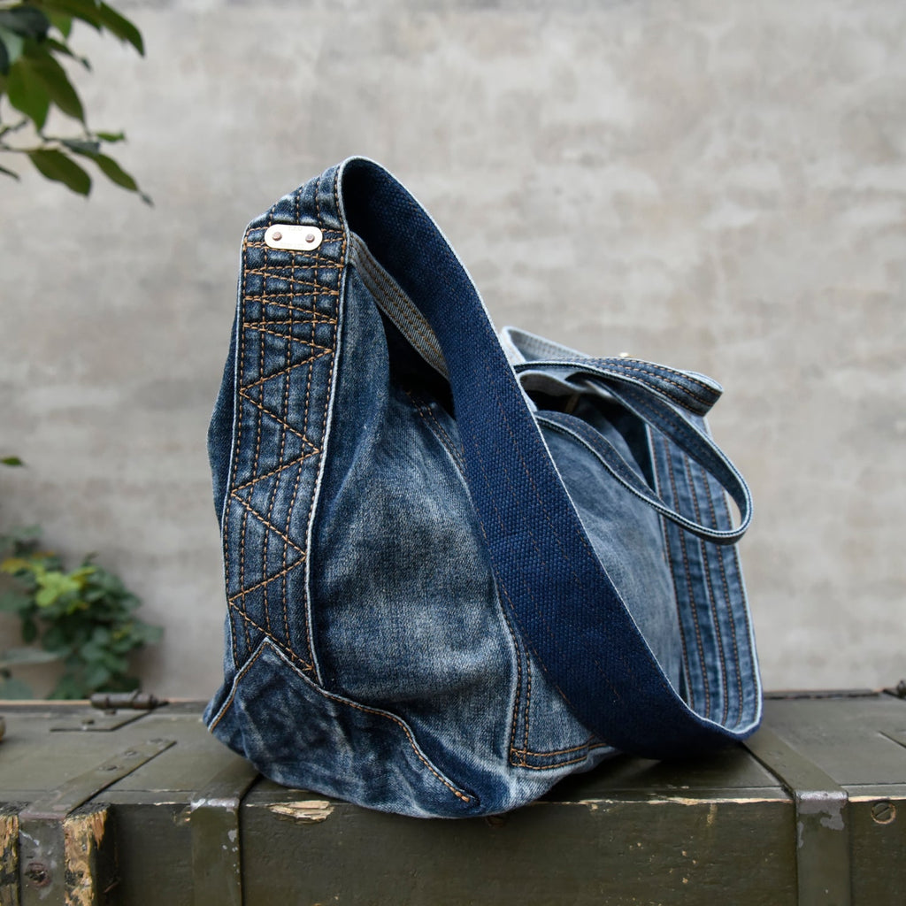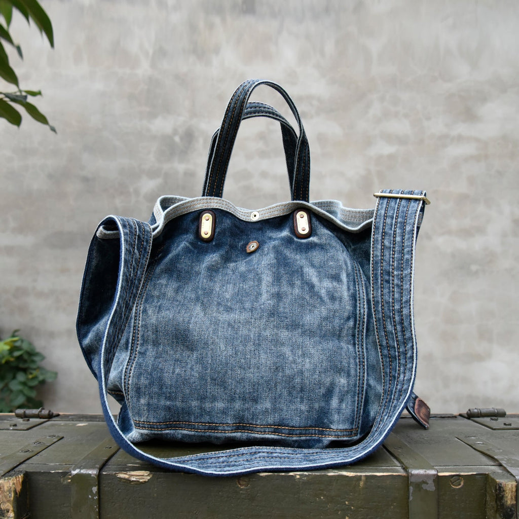 Style: Blue Denim Tote Handbag Denim Tote Bag Blue Denim Tote Shoulder Bag Jean Tote Bag