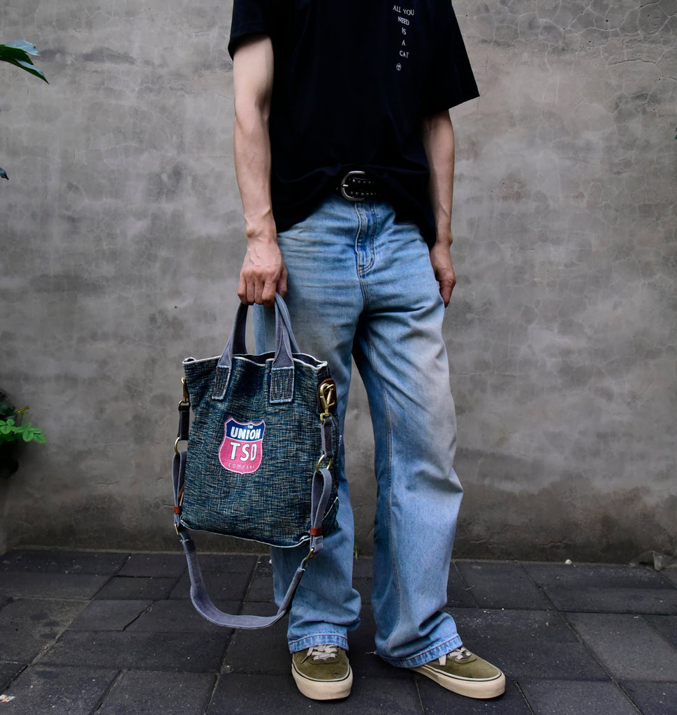Design:Blue Jean Vertical Tote Bag Denim Tote Handbag Denim Tote Bag Blue Denim Tote Shoulder Bag