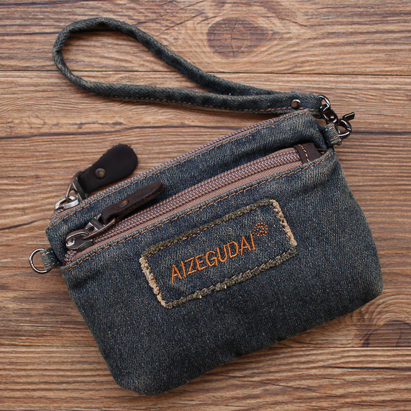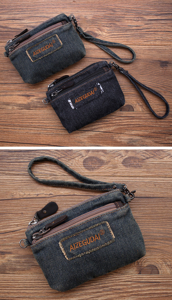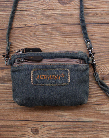 Style: Denim Womens Mini Shoulder Bags Keys Coin Wallet Crossbody Bag Denim Wirstlet Purse