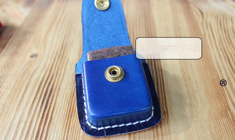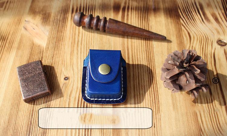 Handmade Blue Leather Mens Standard Zippo Lighter Case Zippo Lighter Holder with Belt Clip