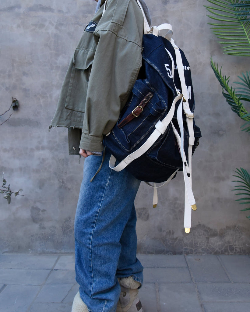Design: Blue Jean Backpack Mens Huge Backpack Large Blue&White Denim Backpack for Men